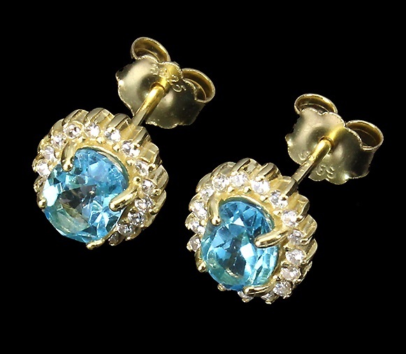 【美麗】スイスブルー・トパーズ・CZ・ピアス