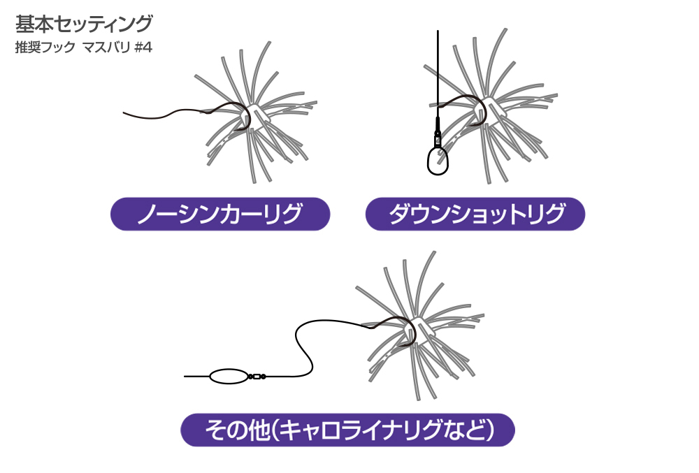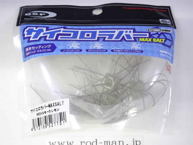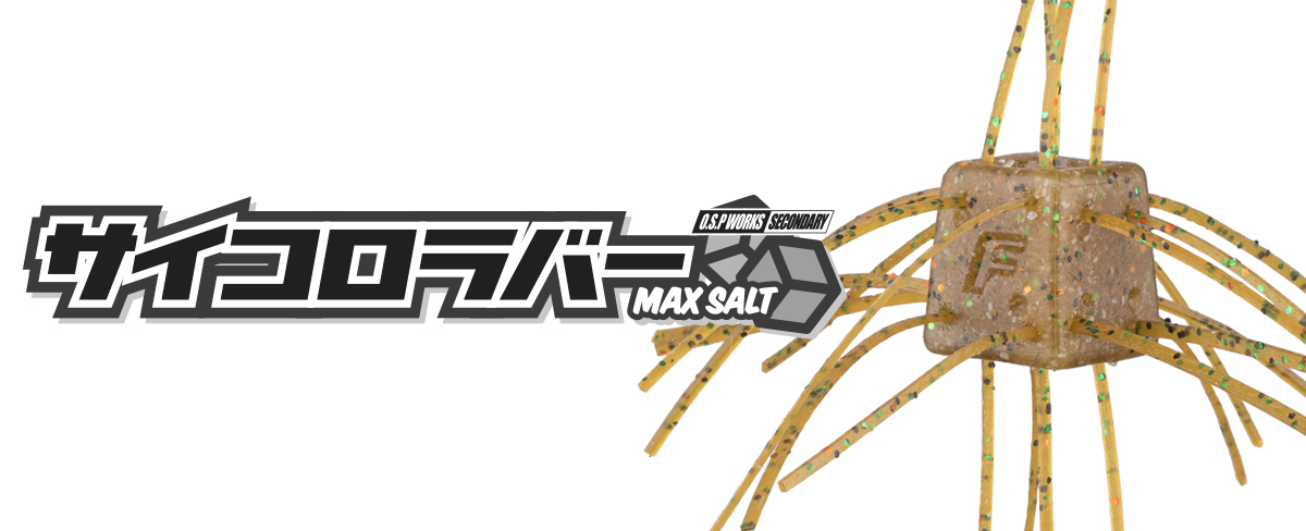ある一定の条件下や使用方法において、オリジナルの性能を上回るセッティングにチューニングしたのがO.S.P WORKS SECONDARY。サイコロラバーMAXSALTはノーシンカーでの使用時にサイコロラバーNONSALTでは攻略できない深いレンジでの使用やガード付きマスバリを使用し濃い目のカバーに吊るしたりするアプローチに特化した高比重モデルである。