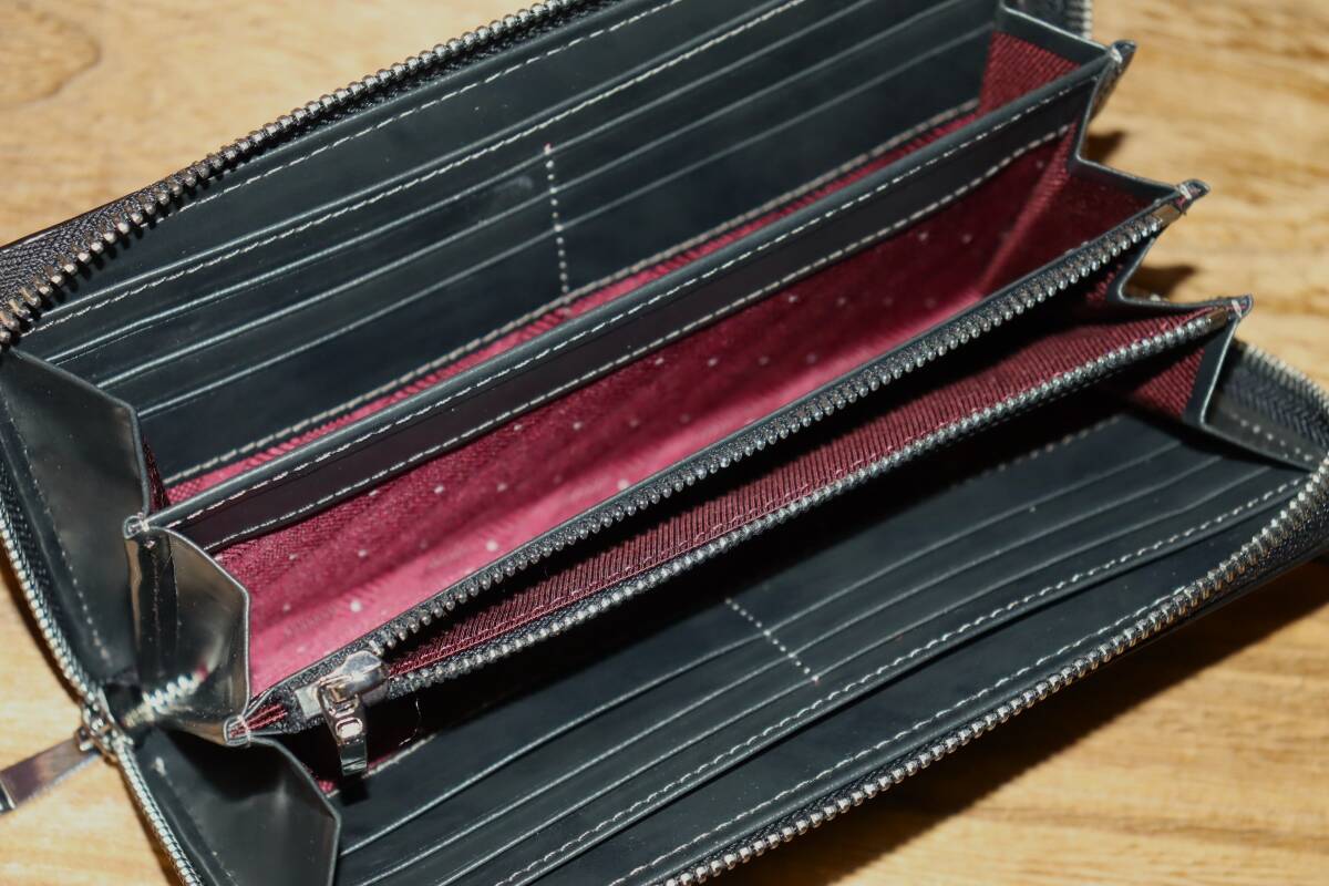 長財布としては珍しい、札室3層構造となっており、収納力が抜群です。繊細で上品な雰囲気が魅力。