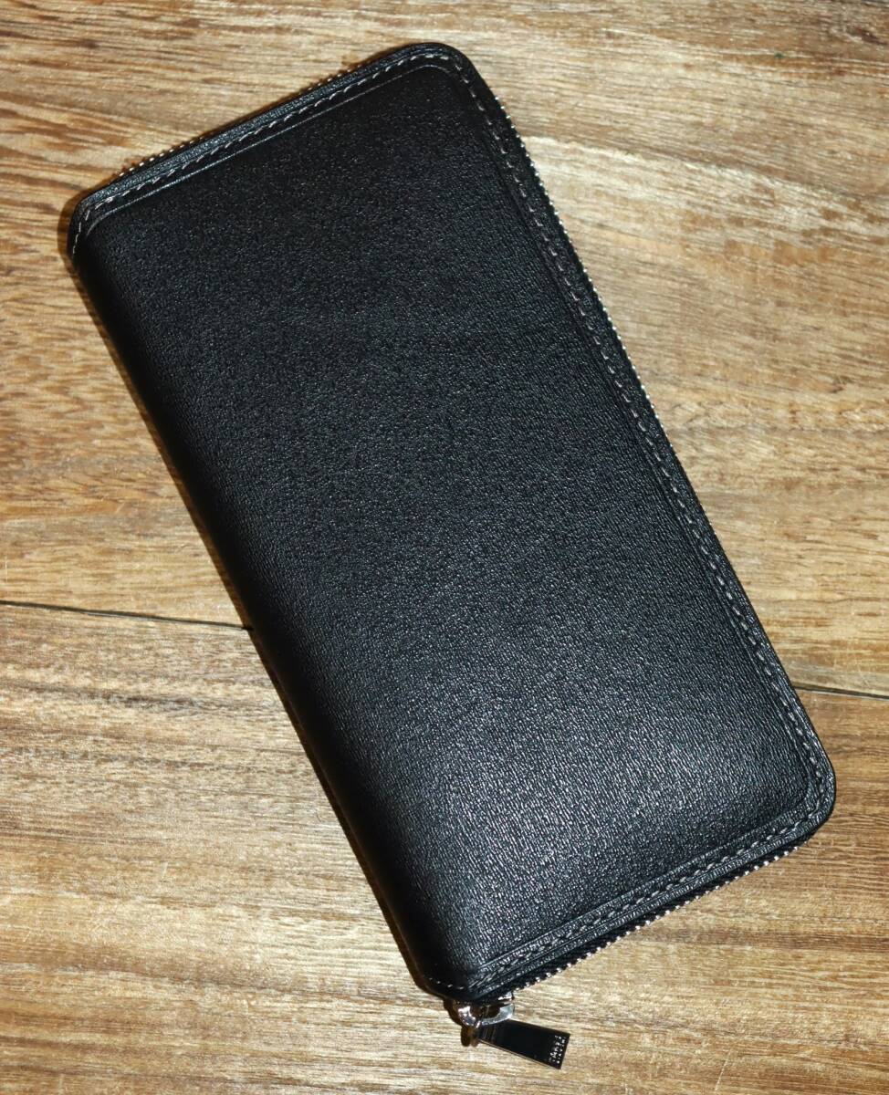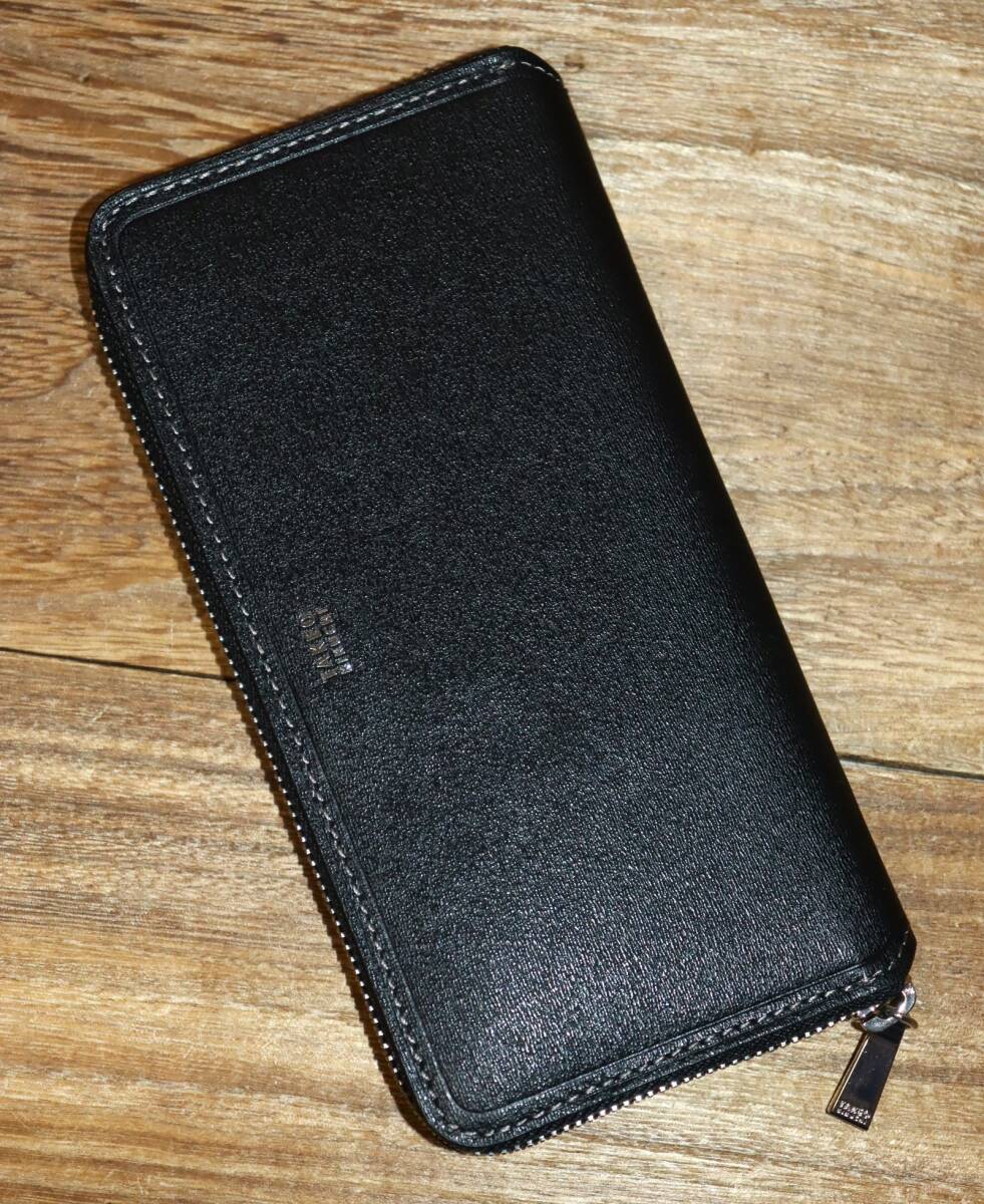 上質なイタリアンエンボスレザーを使用した、タケオキクチのラウンドファスナー長財布。