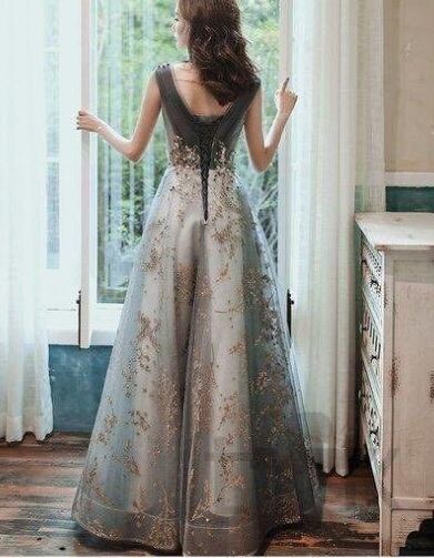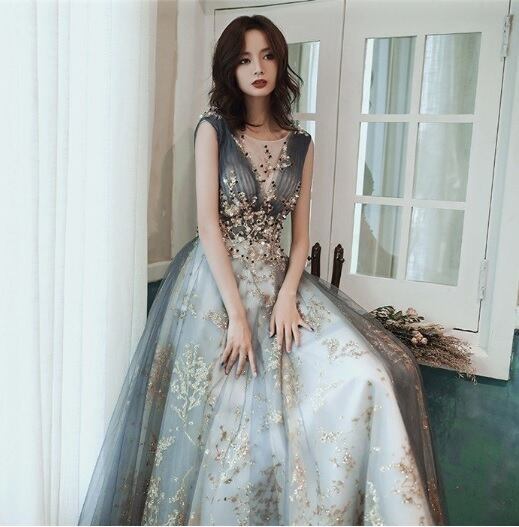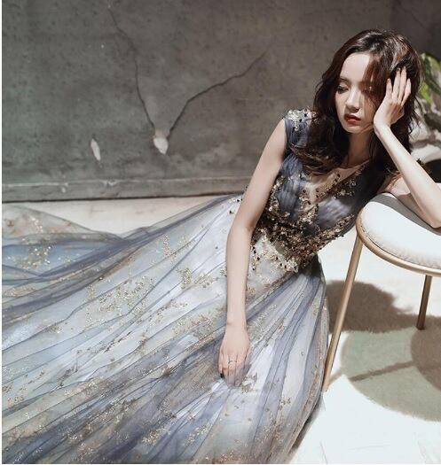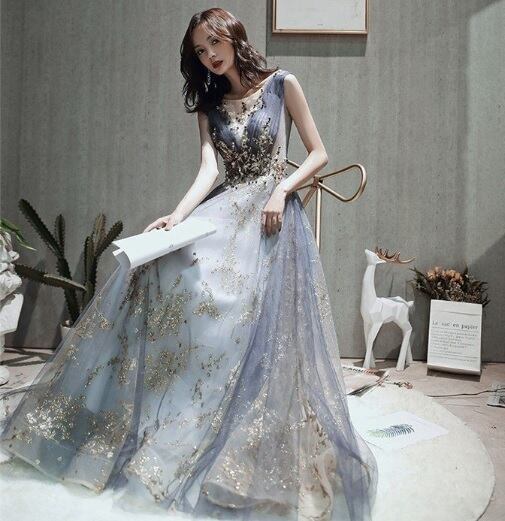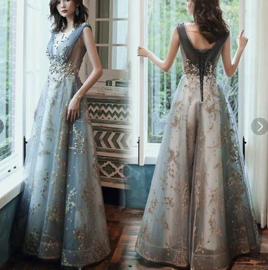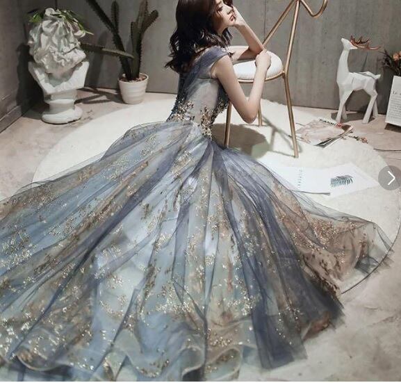 未使用 発表会 舞台衣装 パーティ フォ-マル チュール スパンコール ロング 7号(S) ドレス (OPN2978)