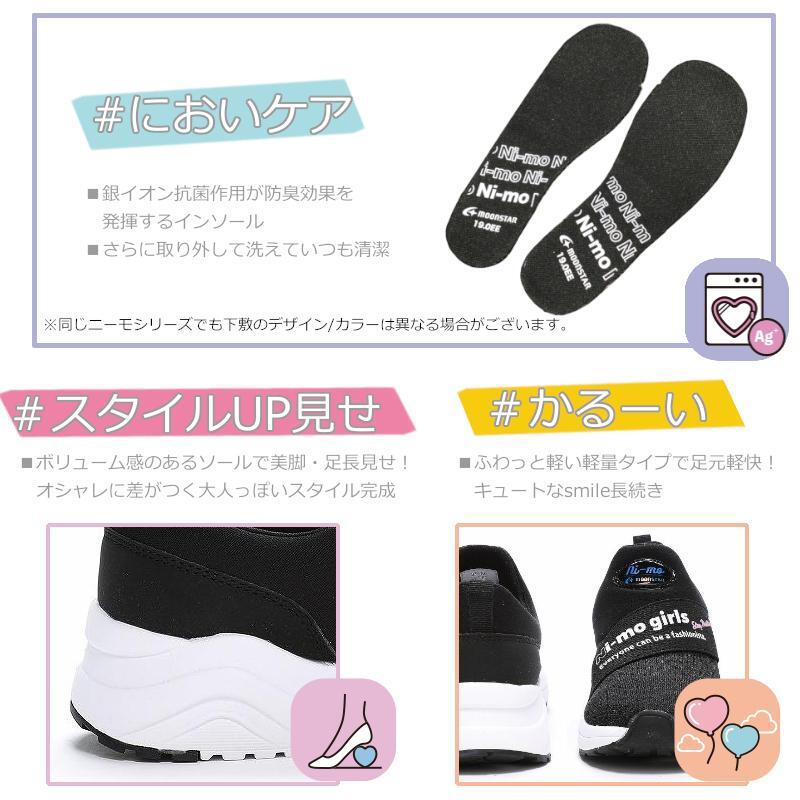 女の子のかわいく、オシャレになりたい気持ちを応援する「ムーンスター ニーモ」のガールズ向けスニーカーです。