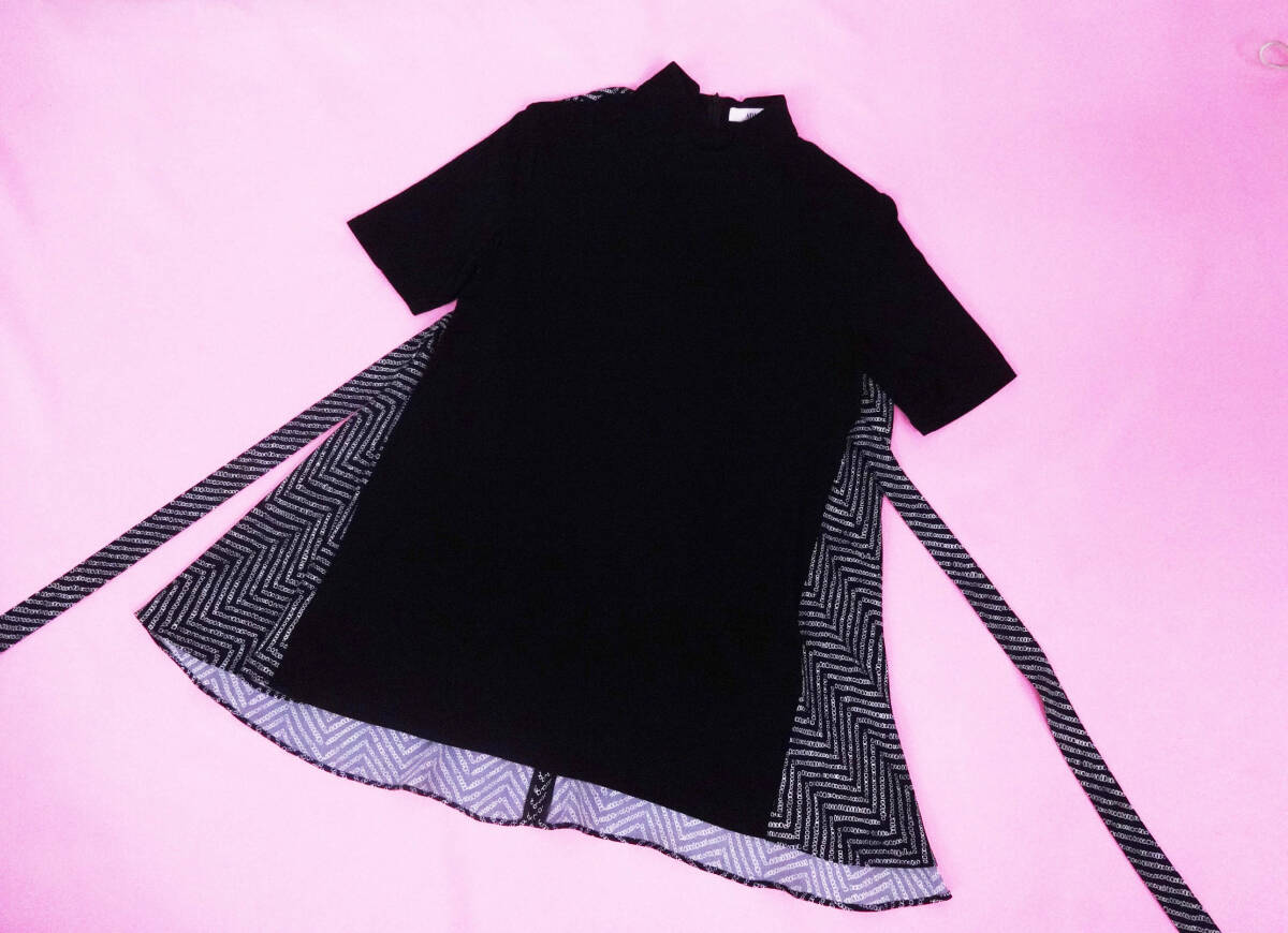 ADEAM アディアム 異素材使い チュニック フレアシルエットトップス ホワイト ブラック 2
