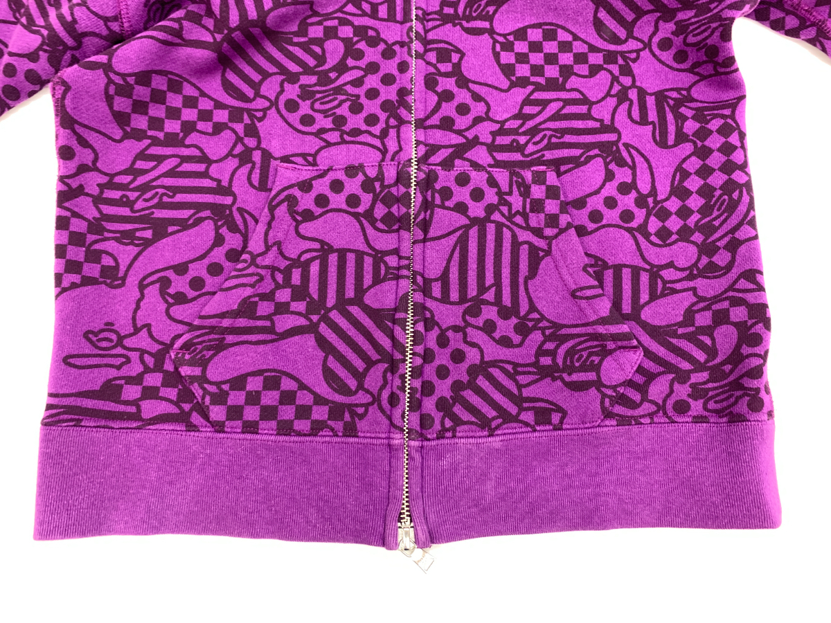 A BATHING APE アベイシングエイプ COOKIE CAMO FULL ZIP HOODIE フルジップアップパーカー パープル XXSサイズ 総柄 ▽100015 | |||||||||