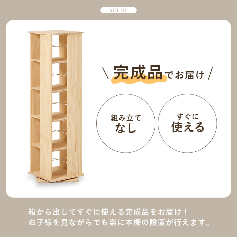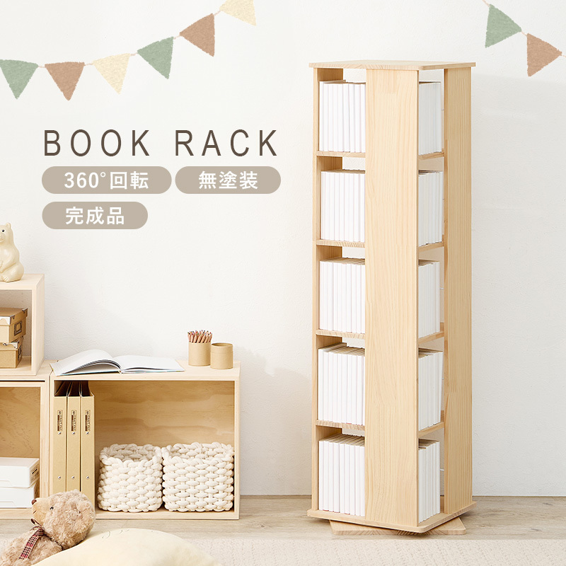 360度回転するので本が探しやすく、省スペースなのに大容量な本棚。