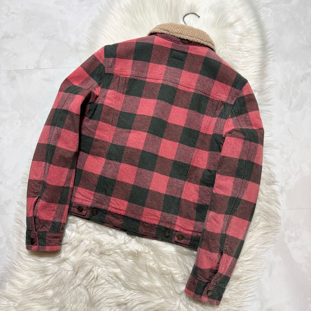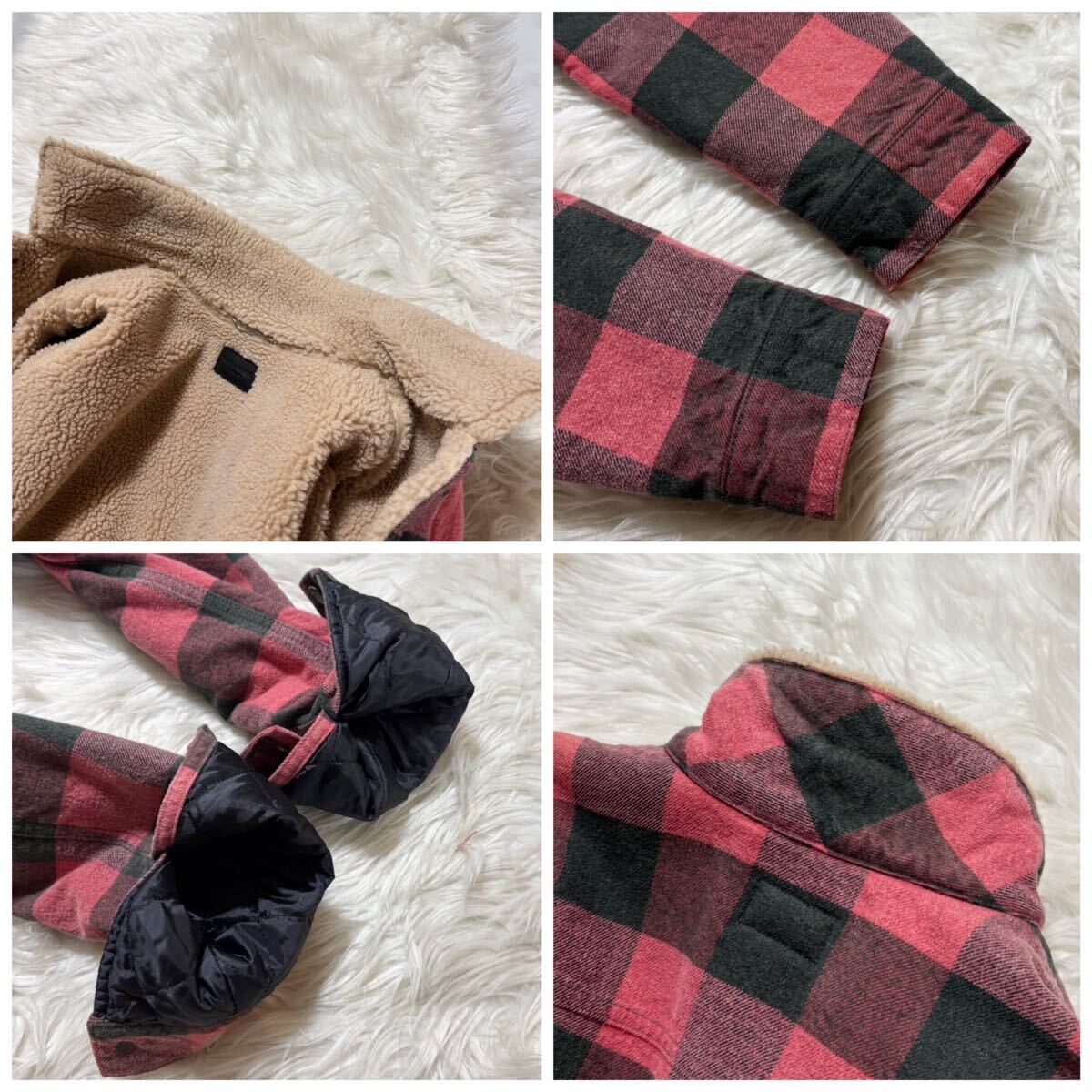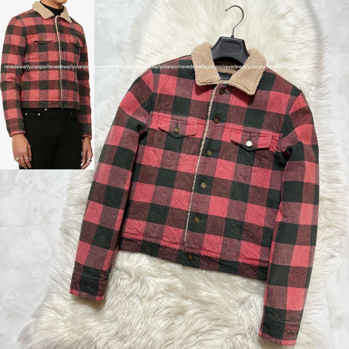 | 本物 極美品 サンローランパリ シワ加工 裏地ボアファー チェック柄 ブルゾン ジャケット S 赤 黒 Saint Laurent Paris | ||||||