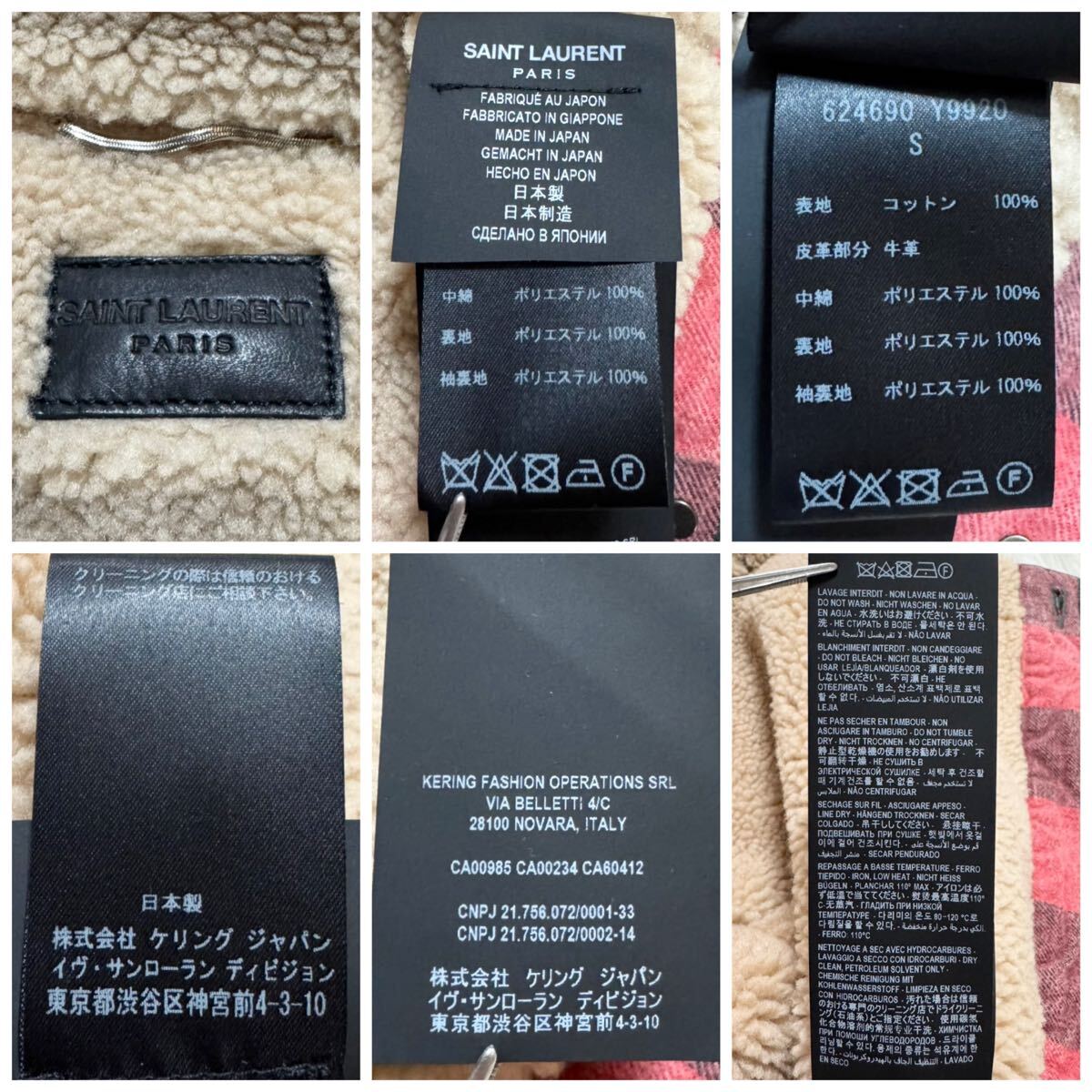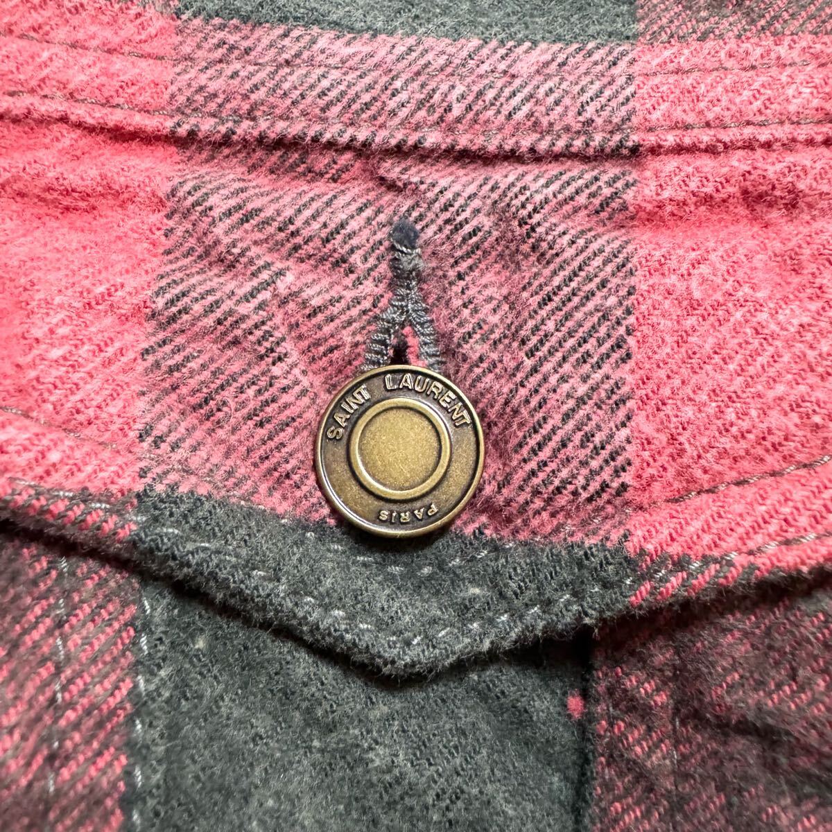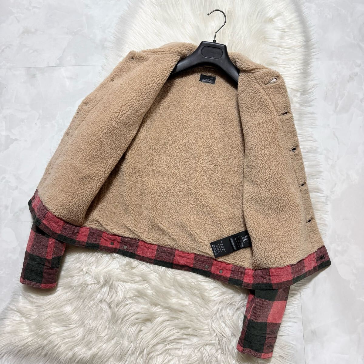 | 本物 極美品 サンローランパリ シワ加工 裏地ボアファー チェック柄 ブルゾン ジャケット S 赤 黒 Saint Laurent Paris | ||||||