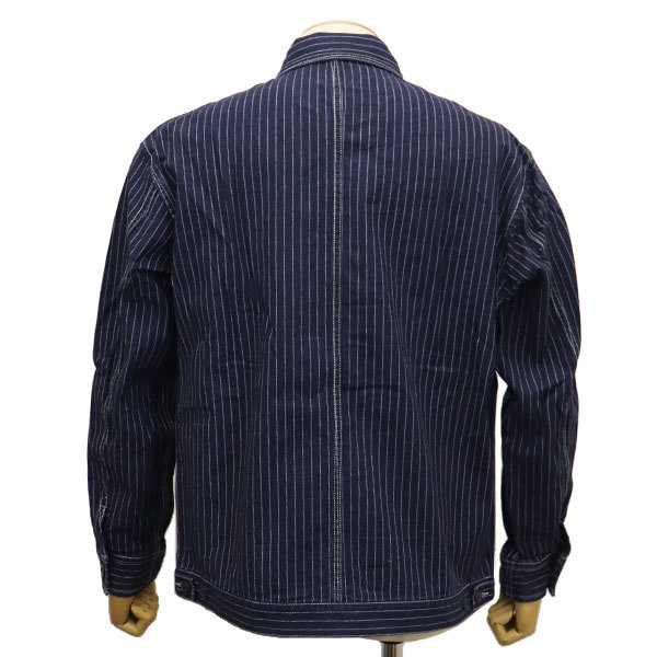 | スペック | Schottオリジナル生地のピンストライプヒッコリーデニムを使用。ストライプは抜染などのプリントではなく織りで表現。染料で着れば着るほど経年変化していく生地。短丈・幅広とアメリカらしいサイズバランスを意識したシルエット。小さいサイズでも肩が落ちて緩めの雰囲気を出るようになっている。WASH INDIGOはインディゴ染料 弱加工を入れてあたりを出してます。 |
