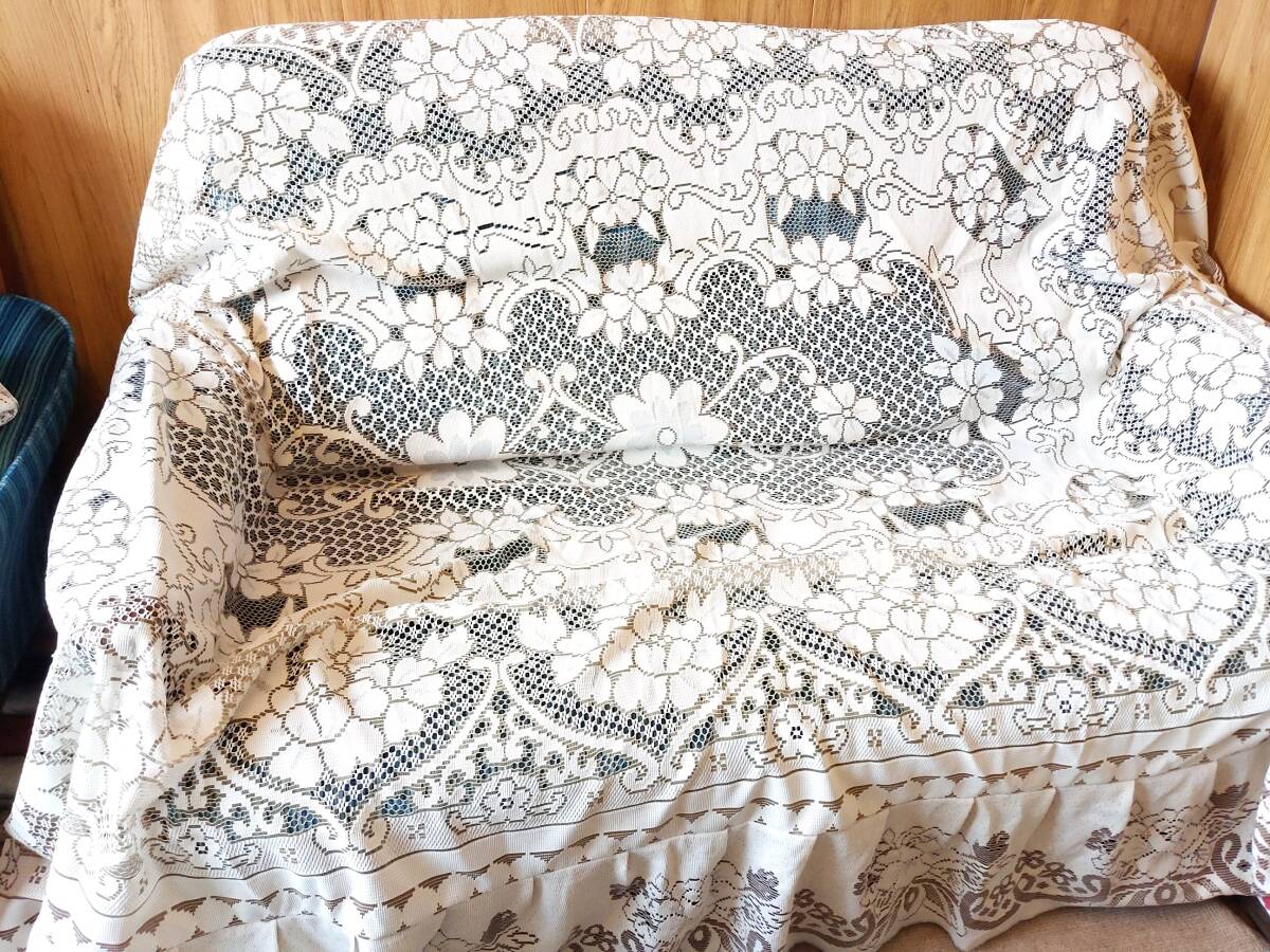●即決●送料無料★レースソファカバー 2人掛用★ひじ掛けあり★エレガントな花柄*洗濯機丸洗い OK! レース破れ箇所あり