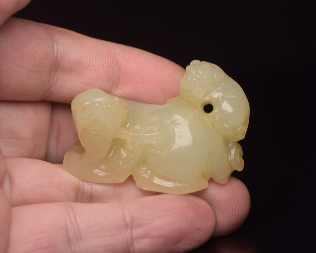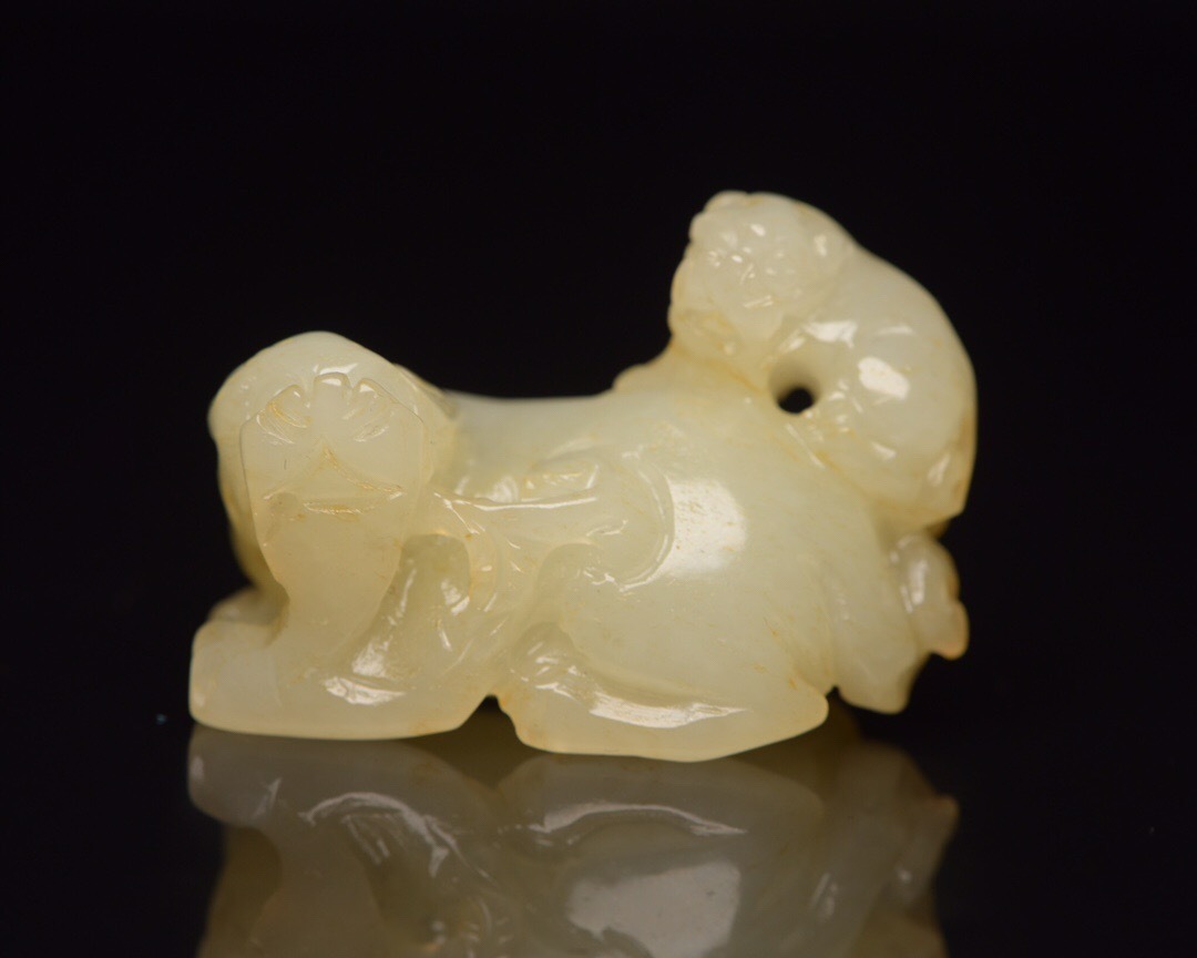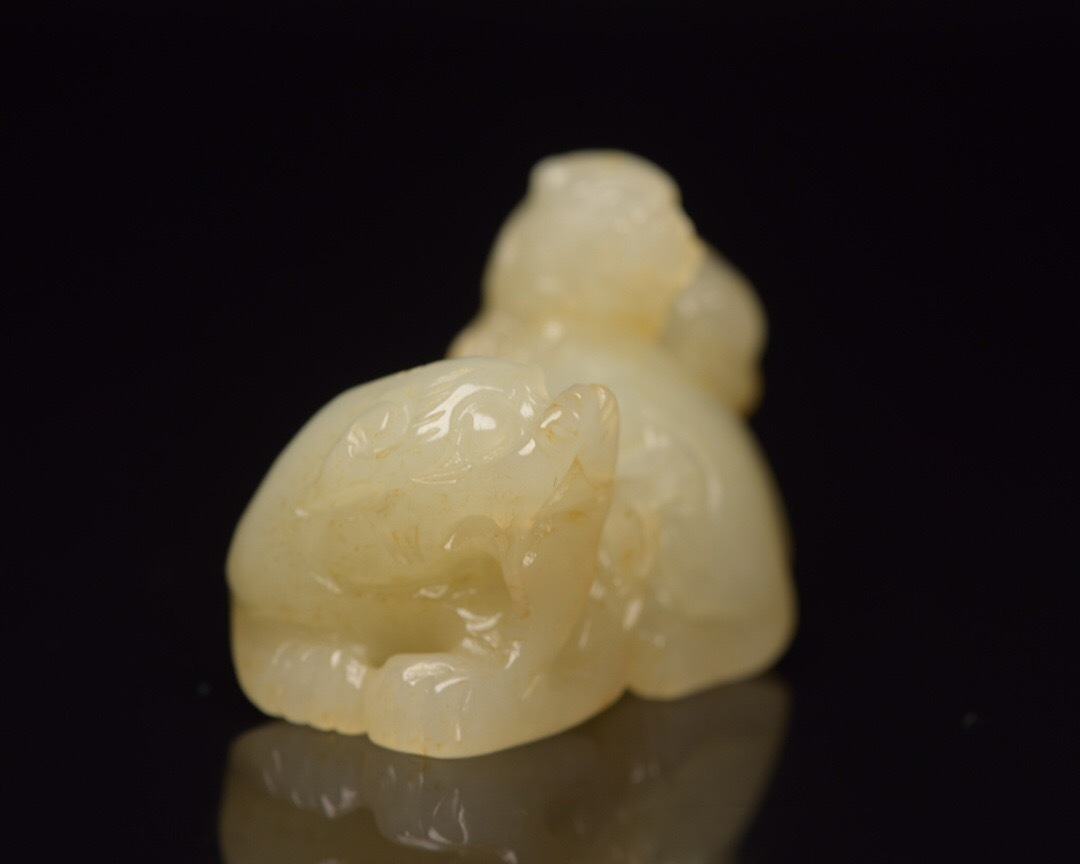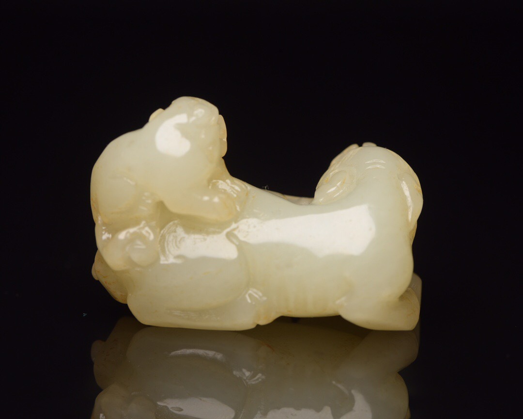 | 【蔵友館蔵品・和田玉製・細密彫・子母獣・置物・賞物】・古董品・中国古玩・時代物・希少珍品・中国時代美術 |