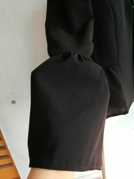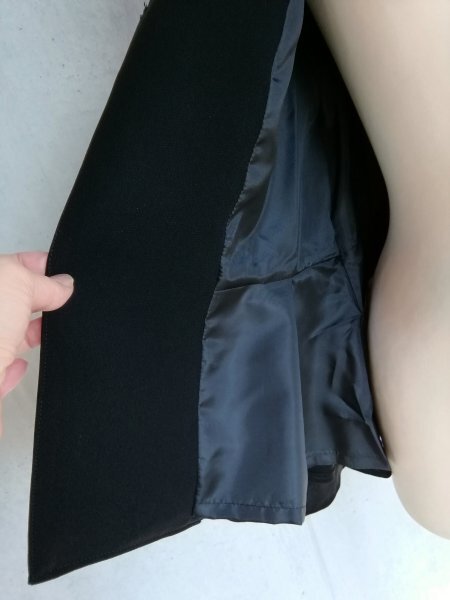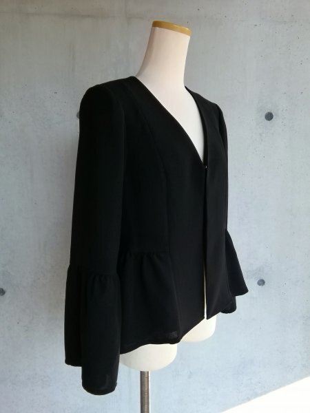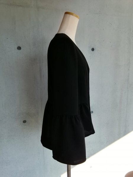 シンプルなブラックフォーマル用生地で作ったVネックのジャケットです。