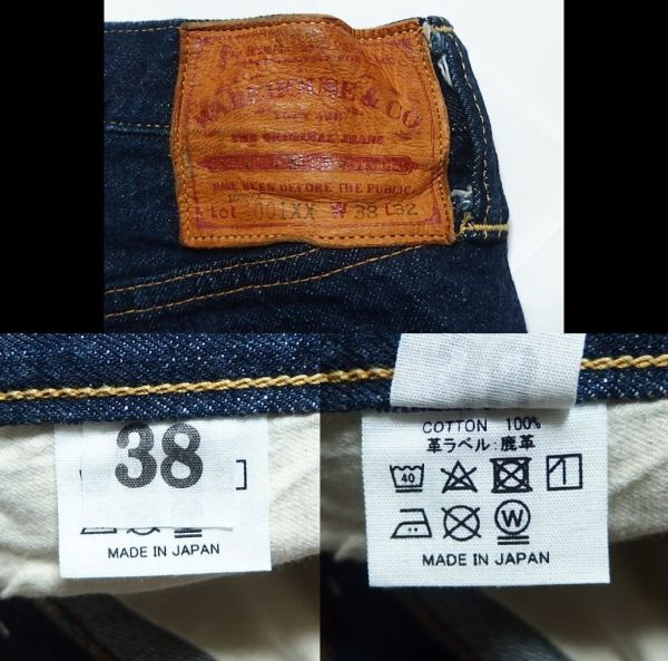<商品名> WAREHOUSE ウエアハウス DEAD STOCK BLUE デッドストックブルー Lot 1001XX(1000XX) 1947 MODEL デニム パンツ W38 <サイズ> W38 <詳しい寸法> ウエスト92股上31.5股下65裾幅23(単位:㎝) ぐらいです。 <商品状態> 多少の使用感、素材特有の着用に伴うスレやアタリ、色あせ、内側に革パッチの色移り、裾に折跡はございますが色は濃く良好です。 <商品説明> Lot 1001XX(1000XX) 1947MODEL