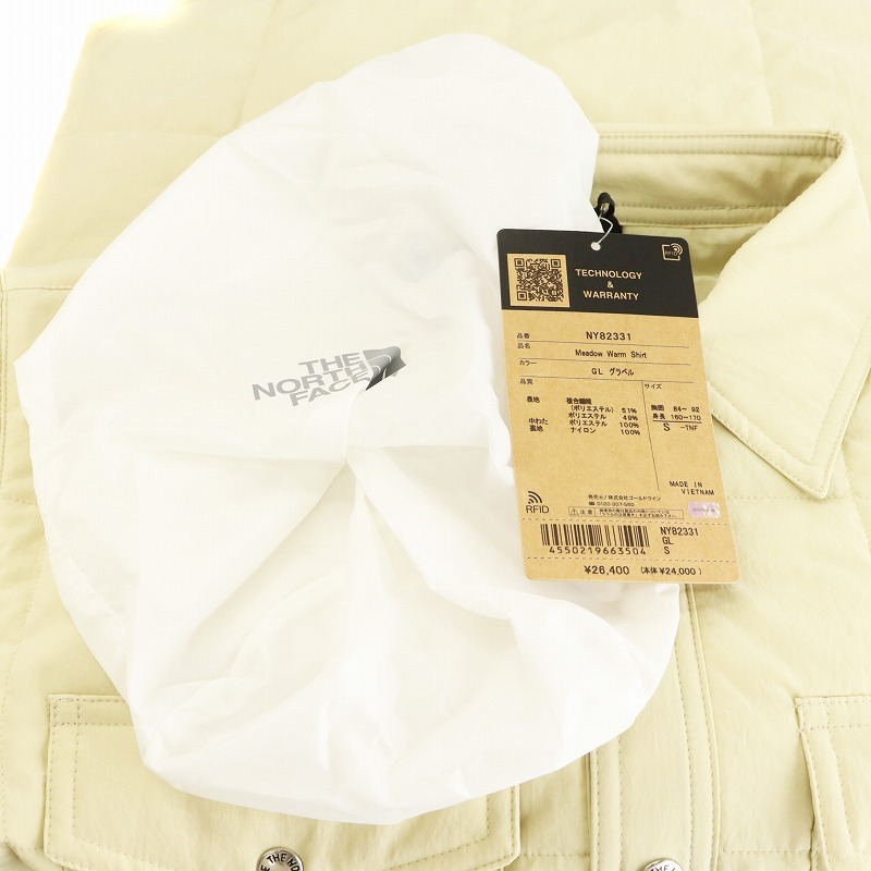 未使用品 ザノースフェイス THE NORTH FACE メドウウォームシャツ 中綿ジャケット ロゴ S ベージュ NY82331