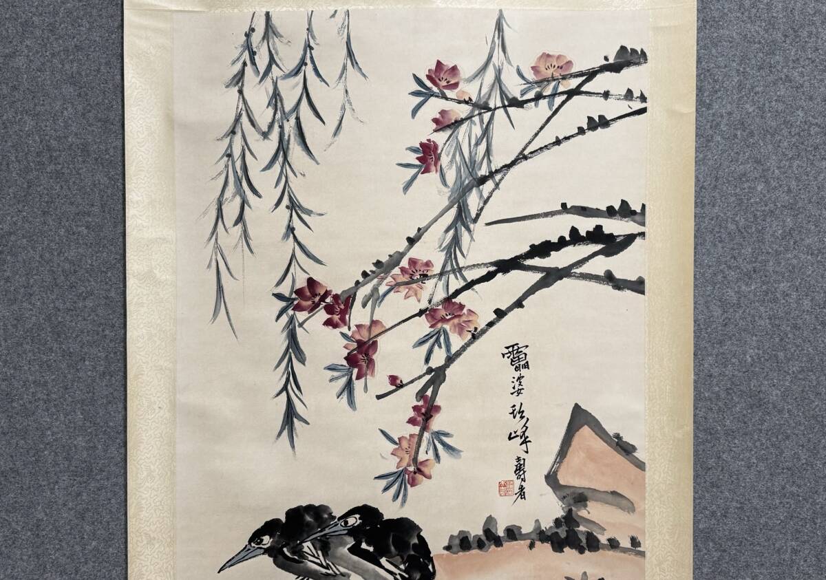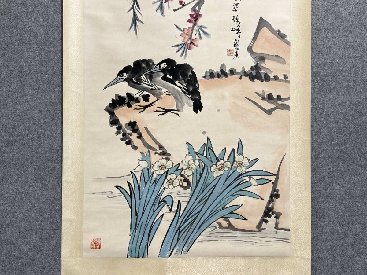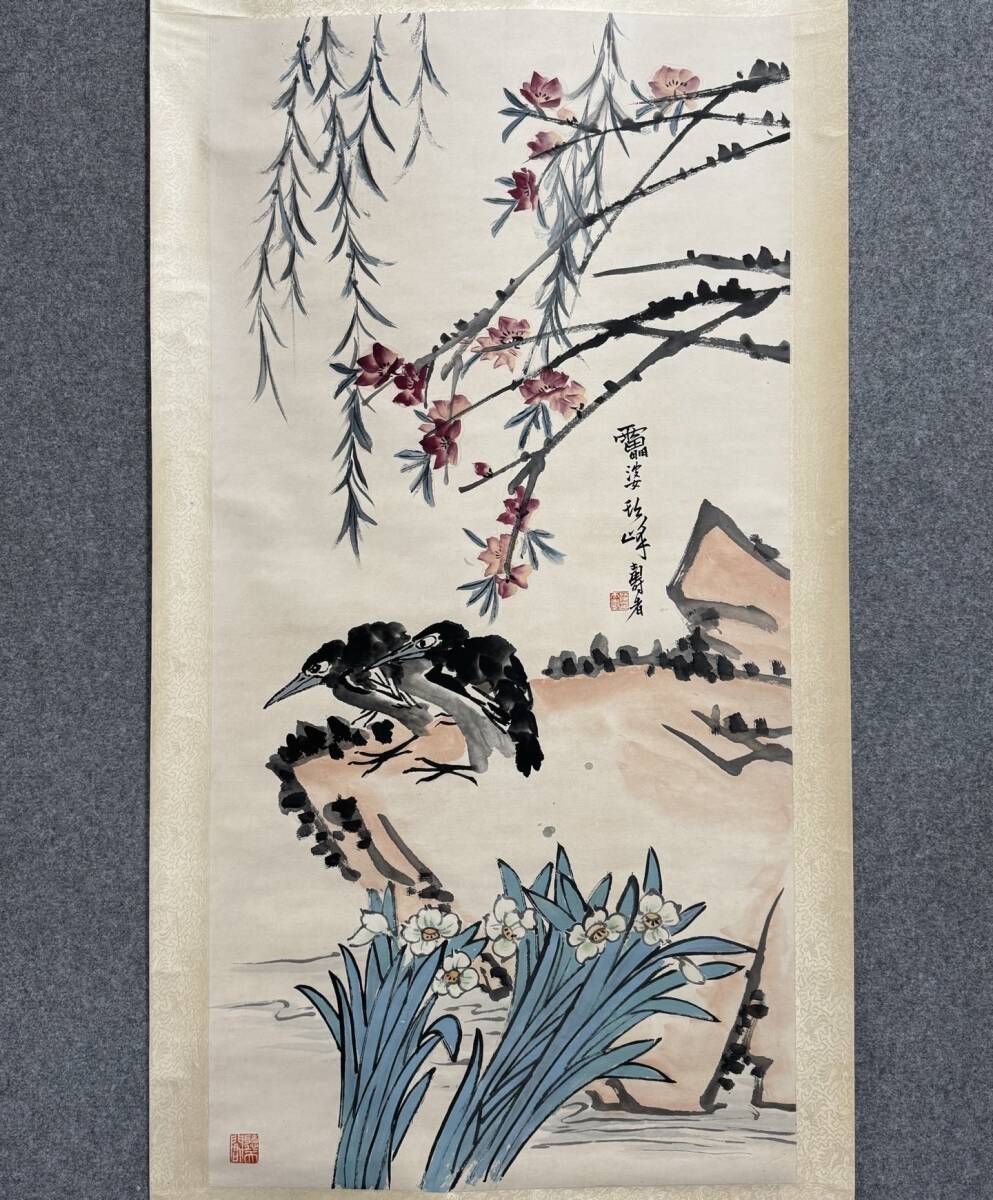 『三希堂』 中国画 古美術 [潘天寿花鳥図] 掛け軸 真筆逸品 肉筆保証 中心尺寸137.5X69cm ABC533
