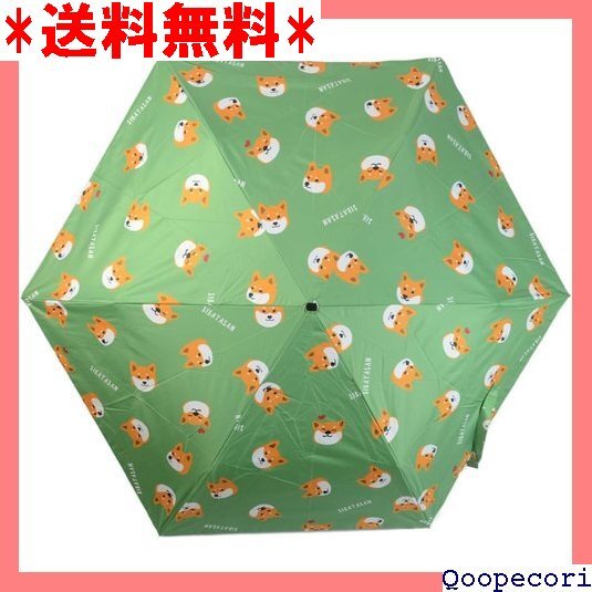 フレンズヒル 折りたたみ傘 しばたさんのかお グリーン KS-361-805 遮光・UVカット99%・晴雨兼用・6本骨・手開き 578
