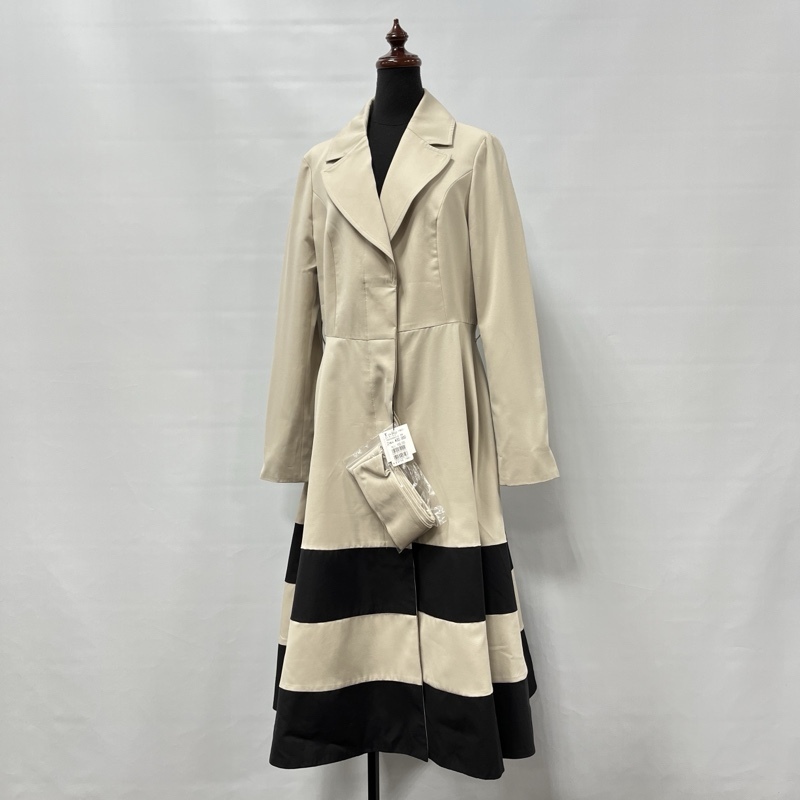 | 【アイテム】 | 裾ボーダー切り替え ベルテッド比翼コート |