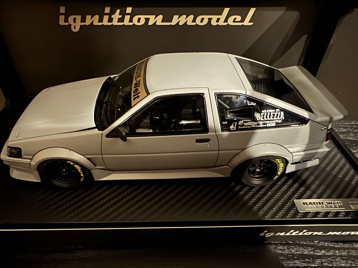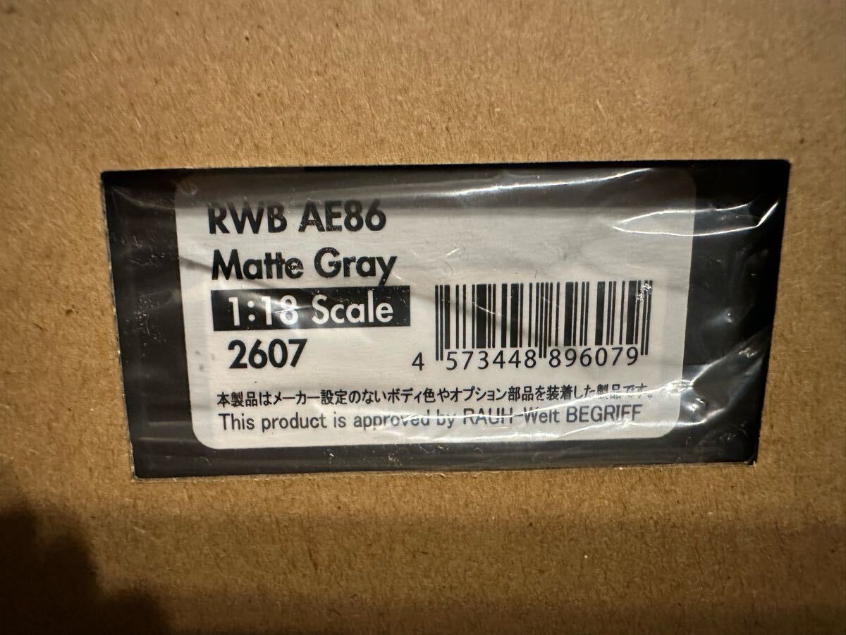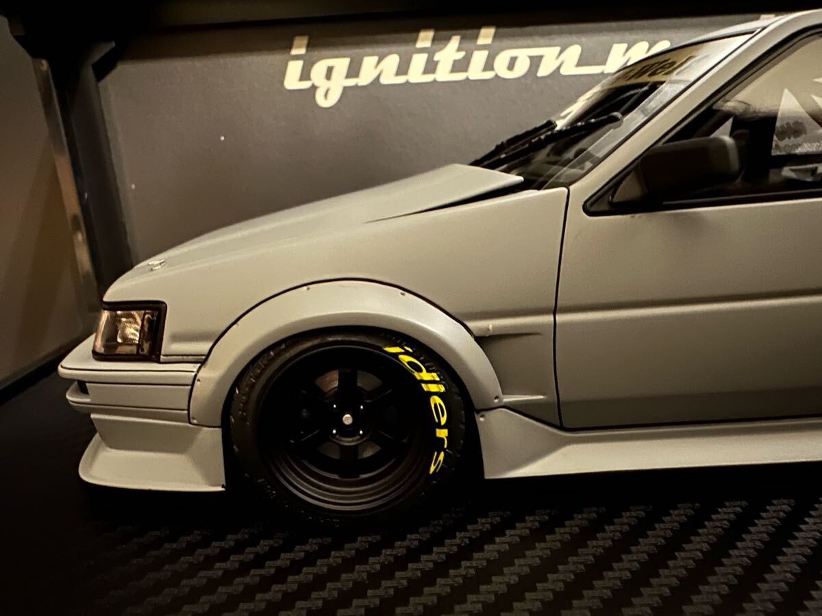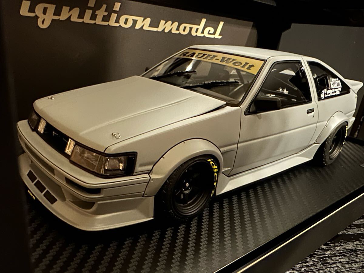 RWB AE86を1/18スケールレジンモデルで再現。15インチスポークホイールにローダウン仕様。