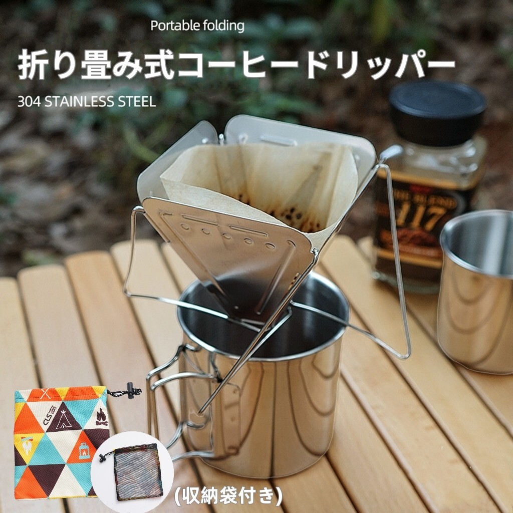 折り畳み式コーヒードリッパー、収納袋付き