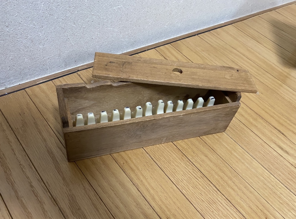 琴柱、琴柱用の箱(お筝の台にもなる)、楽譜立て一式付いています。