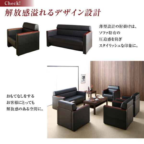 条件や目的に応じて選べる高級木肘デザイン応接ソファセット Office Grade オフィスグレード ソファ3点セット 1P×2+2P【座面カラー:ブラック】です。