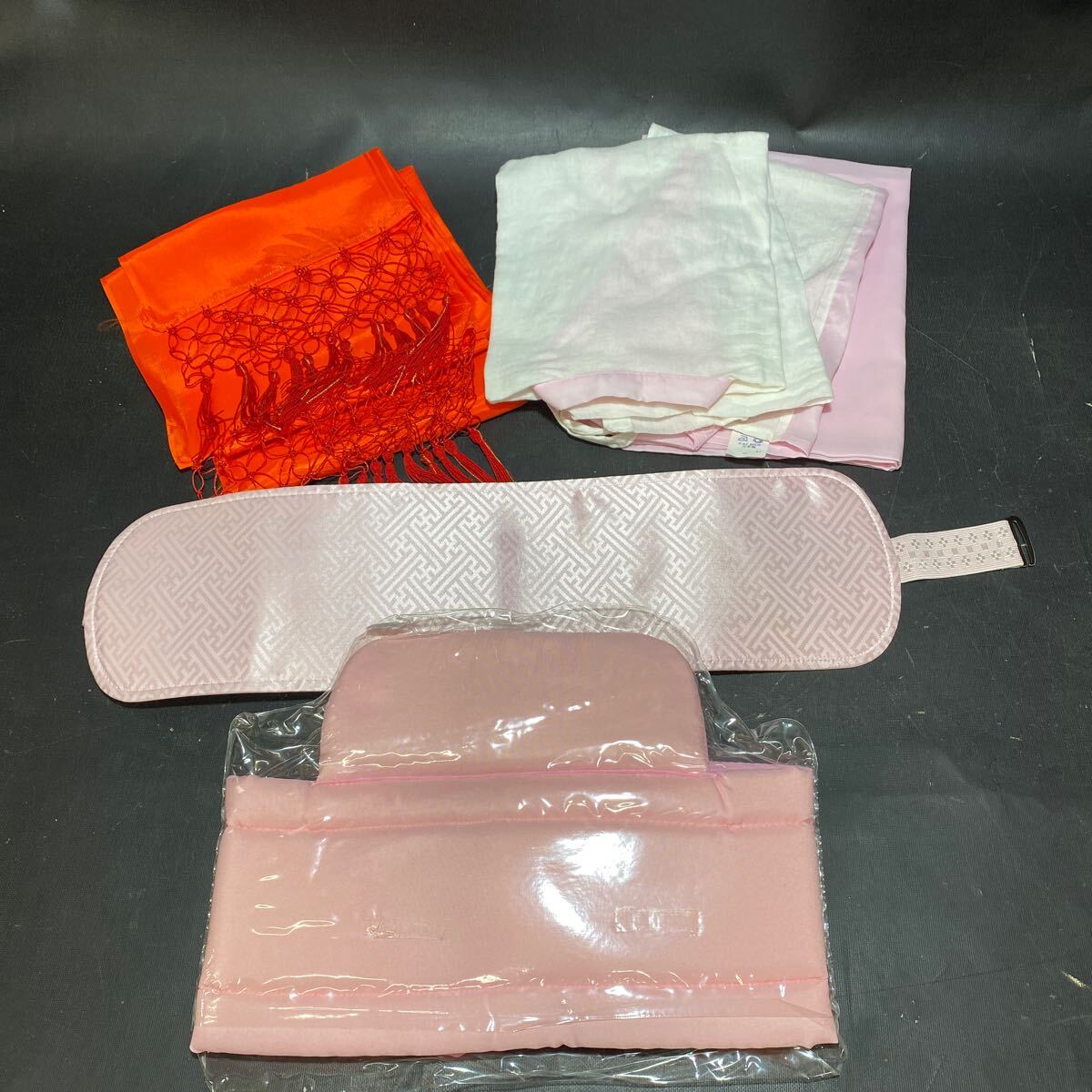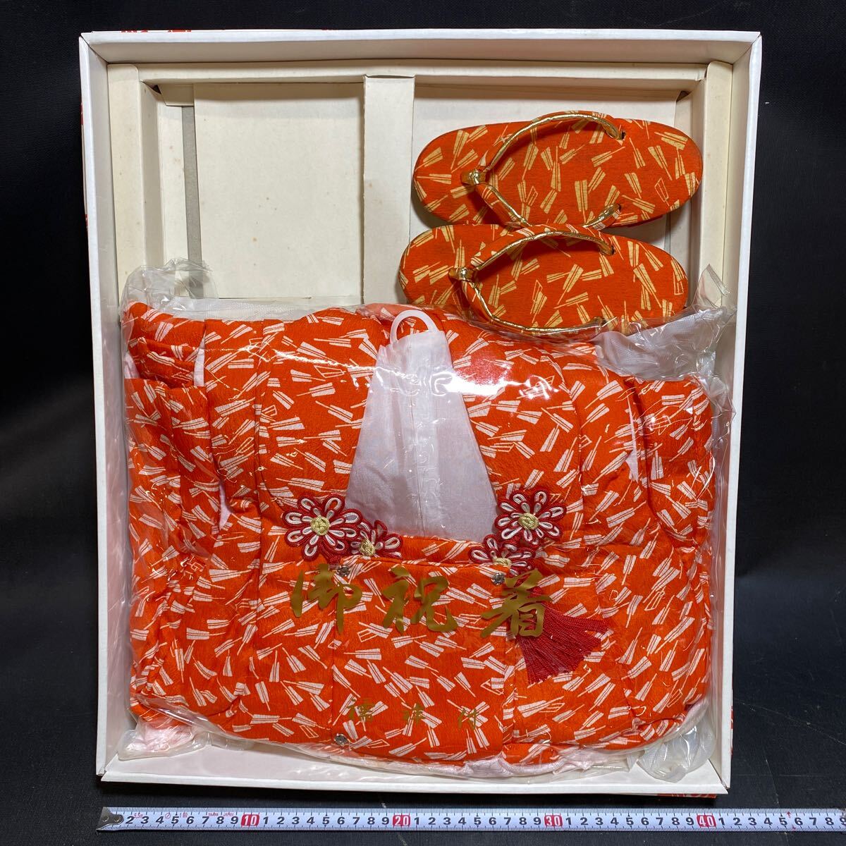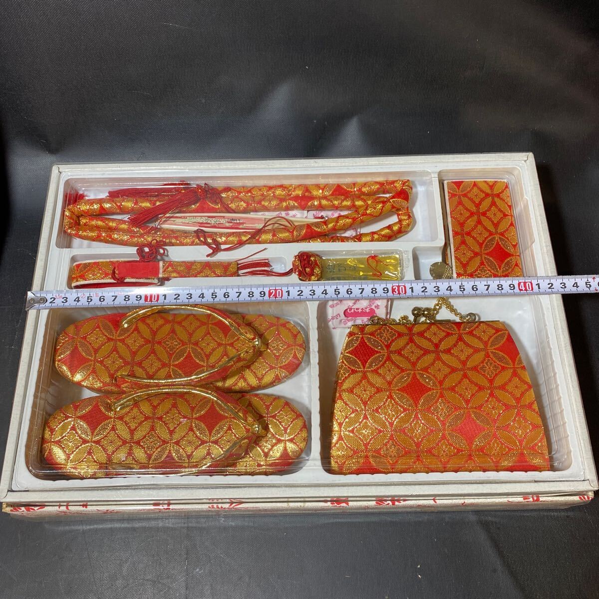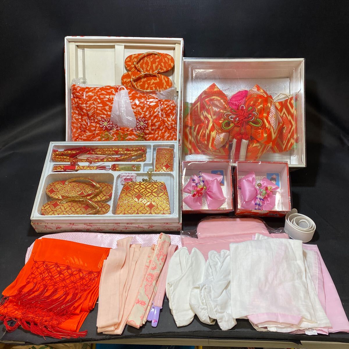 N 5974 [ 子供用 着物セット!!] 着丈90㎝ 七五三 ワンタッチ 和装小物 一式 草履 バック ヘアアクセ 肌着 中古品 保管品 現状品