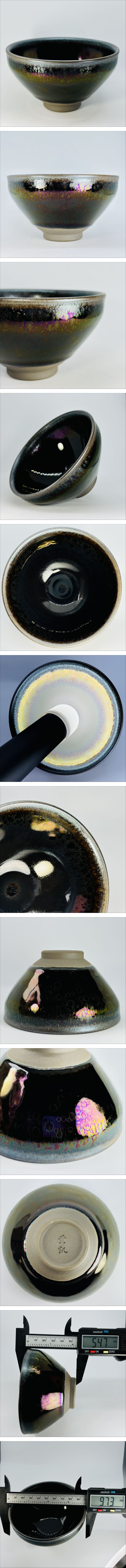 | 【【TM15】黄凱作 七彩油滴天目茶碗 逸品 酒盃 天目茶碗 束口碗 窯変 茶道具 茶碗 銘品 建窯建盞 中国美術 人間国宝 薪窯焼 陶芸用品 | ||