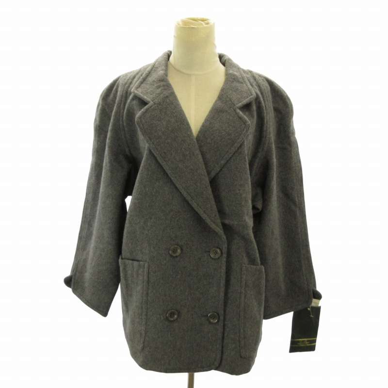 未使用品 レリアン Leilian タグ付 カシミヤ混 ダブルジャケット コート ショート丈 11 グレー ■GY09 0502 レディース