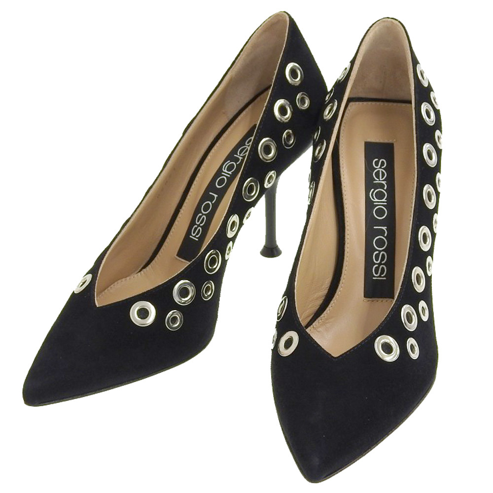 箱付未使用 セルジオロッシ Sergio Rossi 2018年商品 メタルドット ポインテッドトゥ ヒールパンプス 黒 34.5 21.5-22cm |