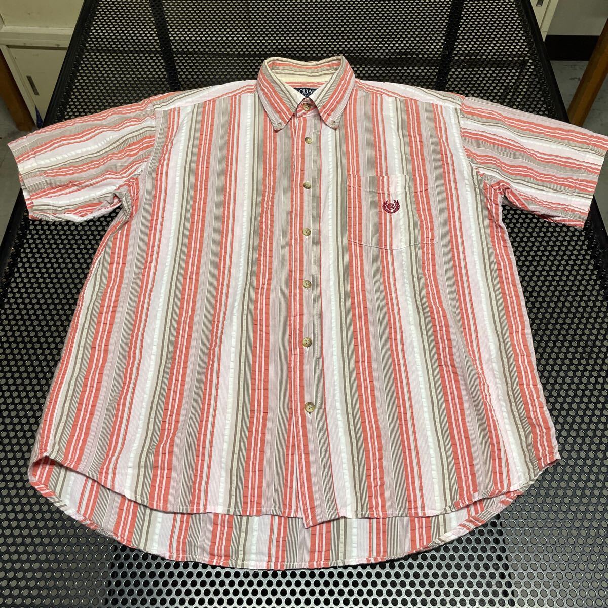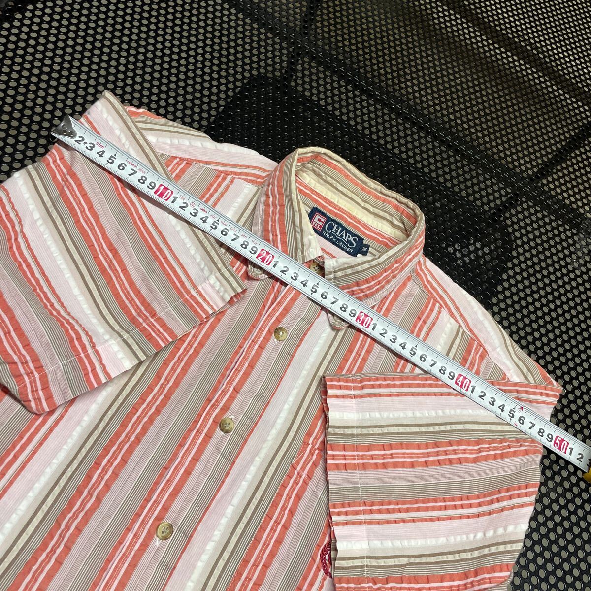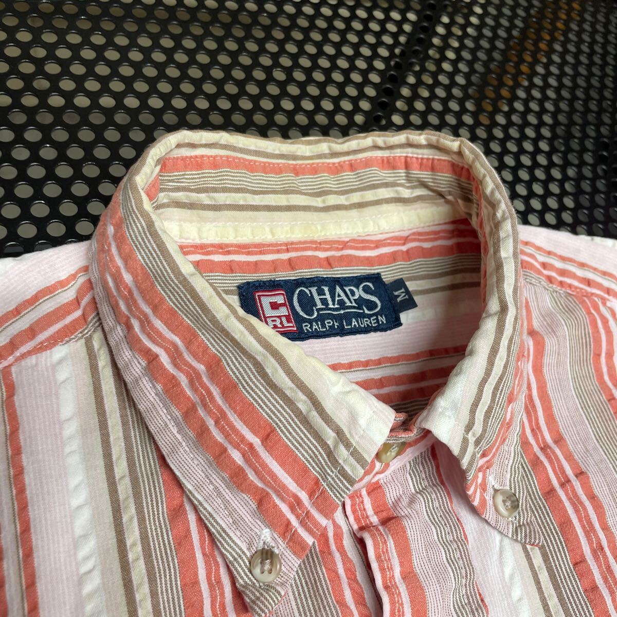 chaps Ralph Lauren シアサッカー混合 半袖 チェック シャツ M 首周り黄ばみあり【洗濯済み】