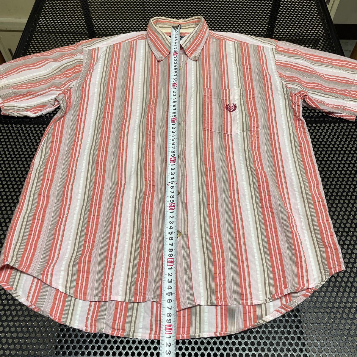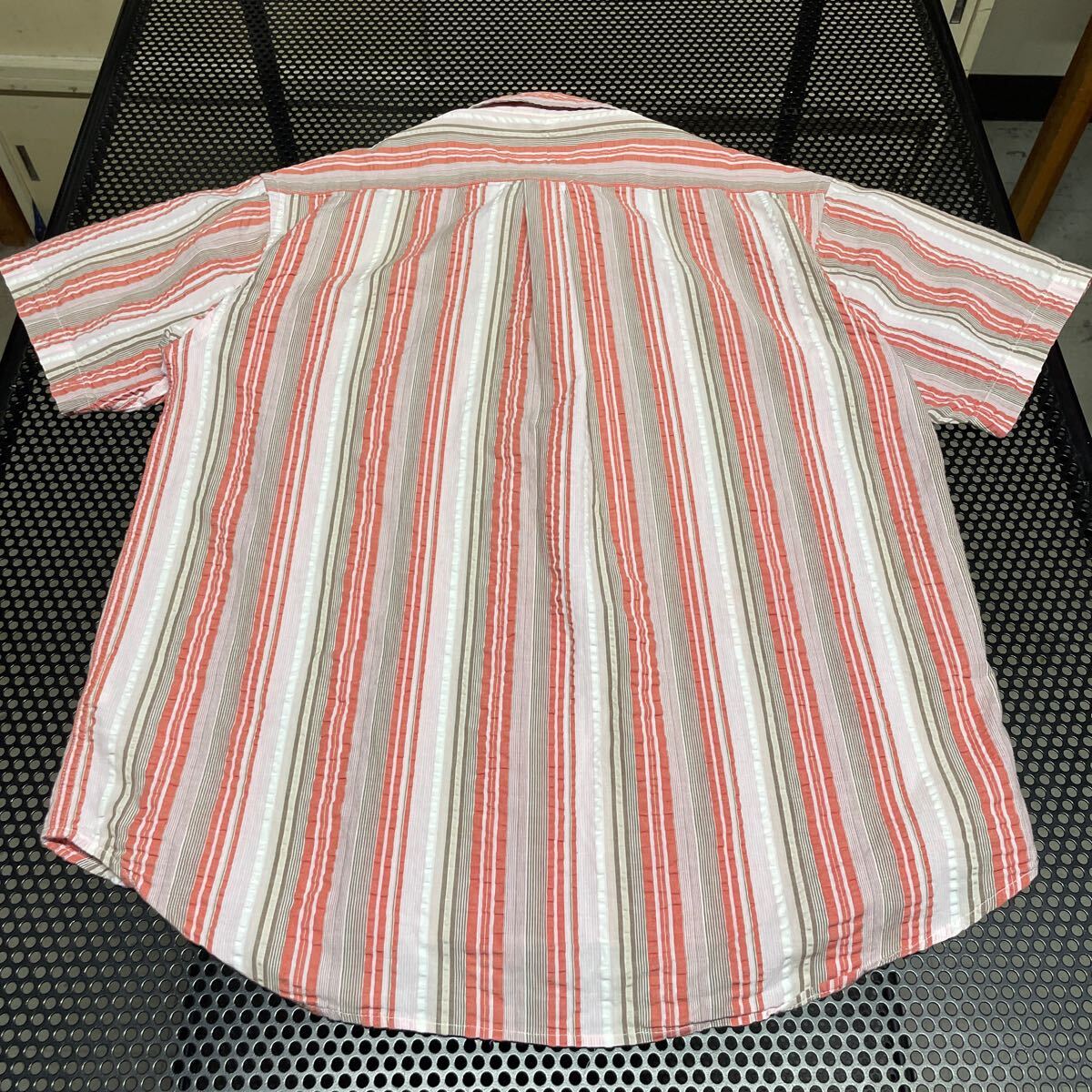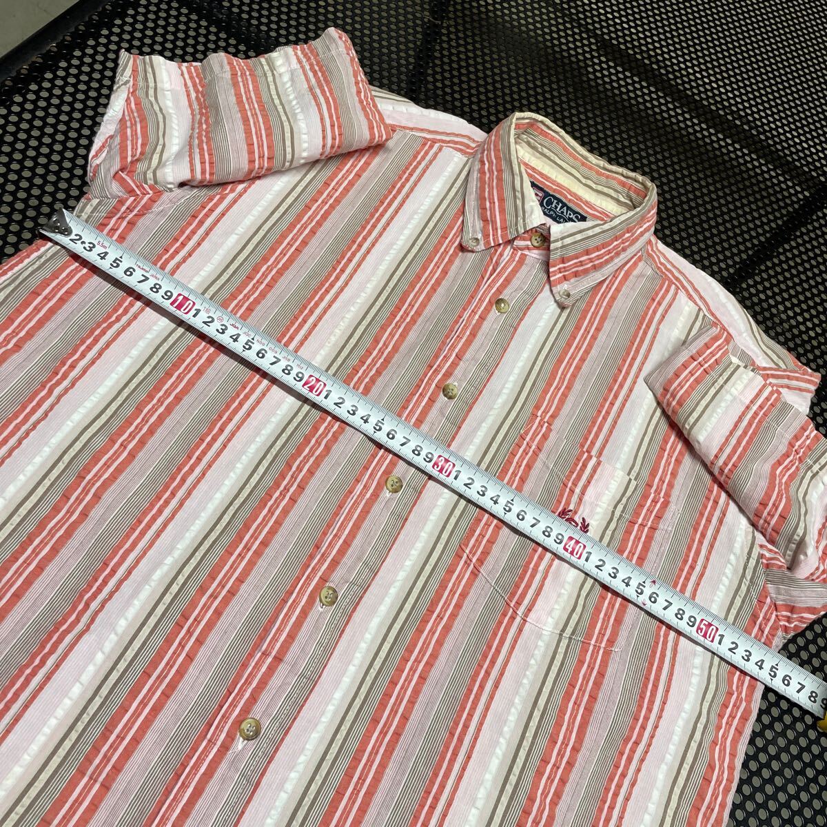 chaps Ralph Lauren シアサッカー混合 半袖 チェック シャツ M 首周り黄ばみあり【洗濯済み】