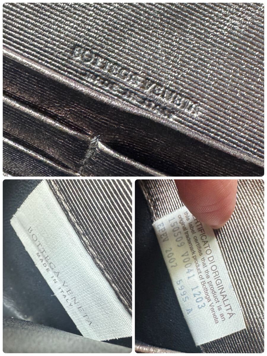 美品 希少 BOTTEGA VENETA ボッテガヴェネタ 二つ折り長財布 イントレチャート レザー ブロンズ メタル レディース メンズ
