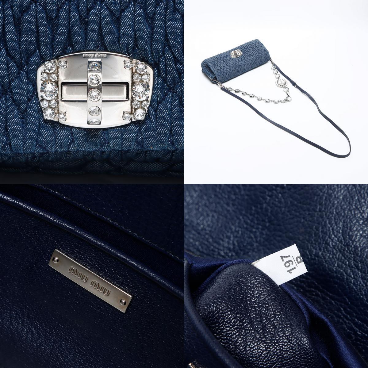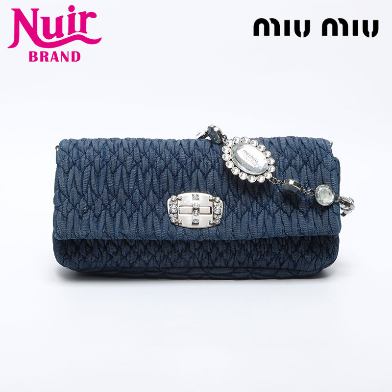 ミュウ ミュウ Miu Miu ショルダーバッグ マテラッセ デニム クリスタル ネイビー