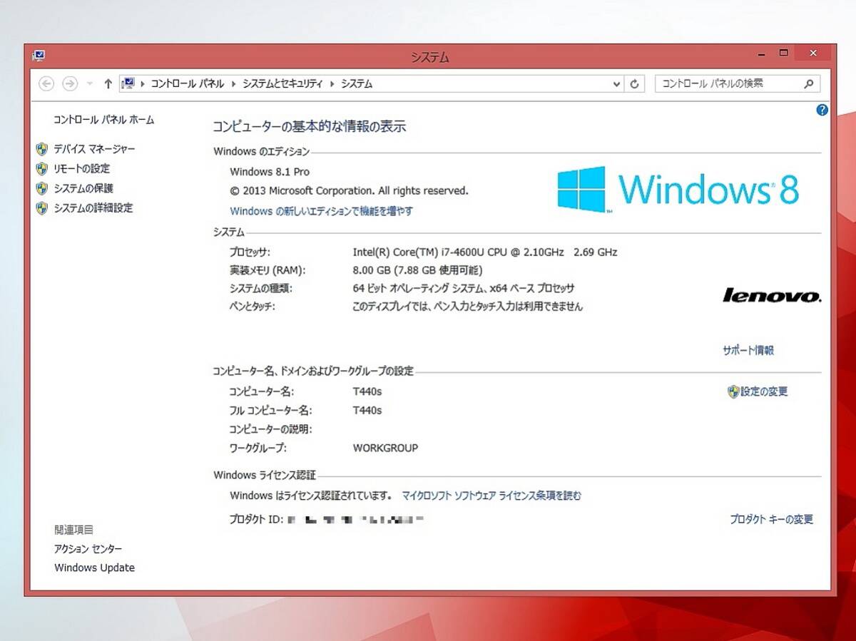 | Lenovo ThinkPad T440s 20ARA1VVJP/Core i7-4600U/8GBメモリ/SSD240GB/14.0型フルHD液晶/サブバッテリー無/Windows8.1 Pro 64ビット #0526 | ||