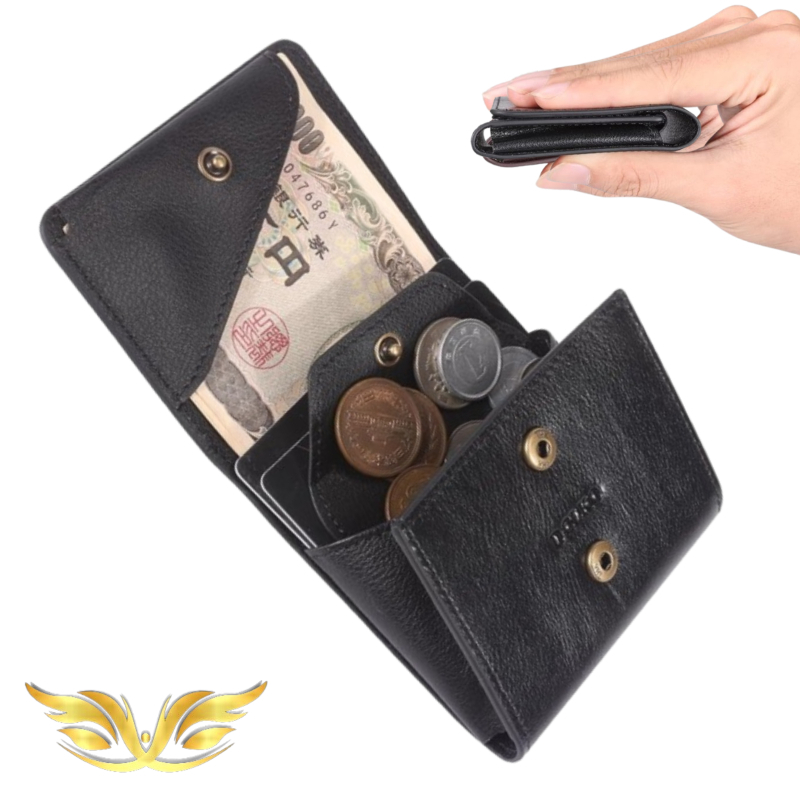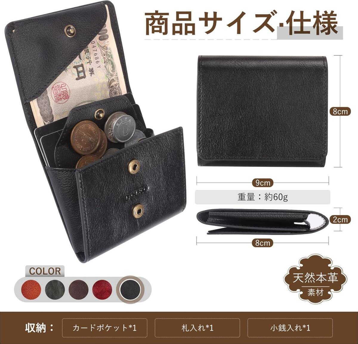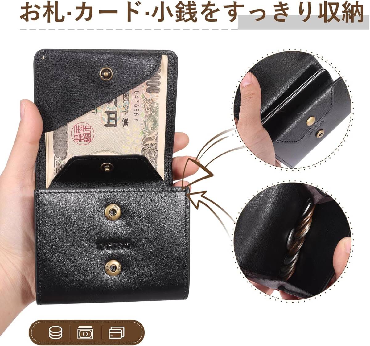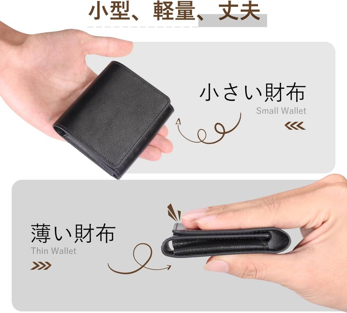 シンプル力 ブラック コンパクト 二つ折り財布 カード入れ お札入れ 小銭入れ スキミング防止 大人感 一粒万倍日 お洒落 高級 本革 財布2