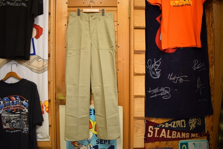 デッドストック品グッドスタイルUSA製80sビンテージUNKNOWNベイカースタイルコットン×ポリエステルパンツW32ベージュ系アメカジワークx735