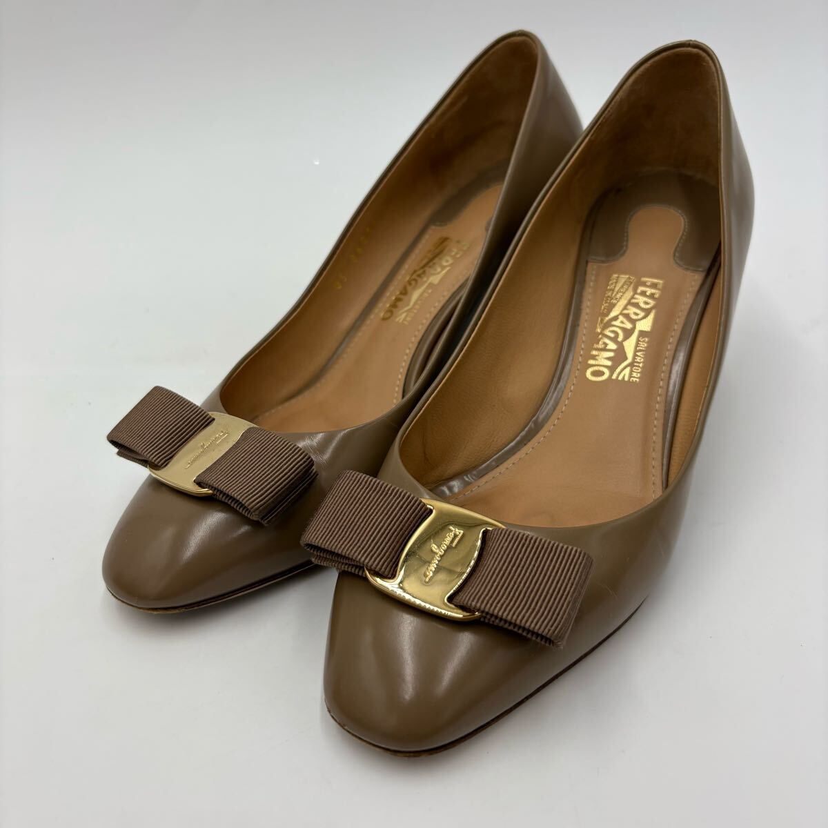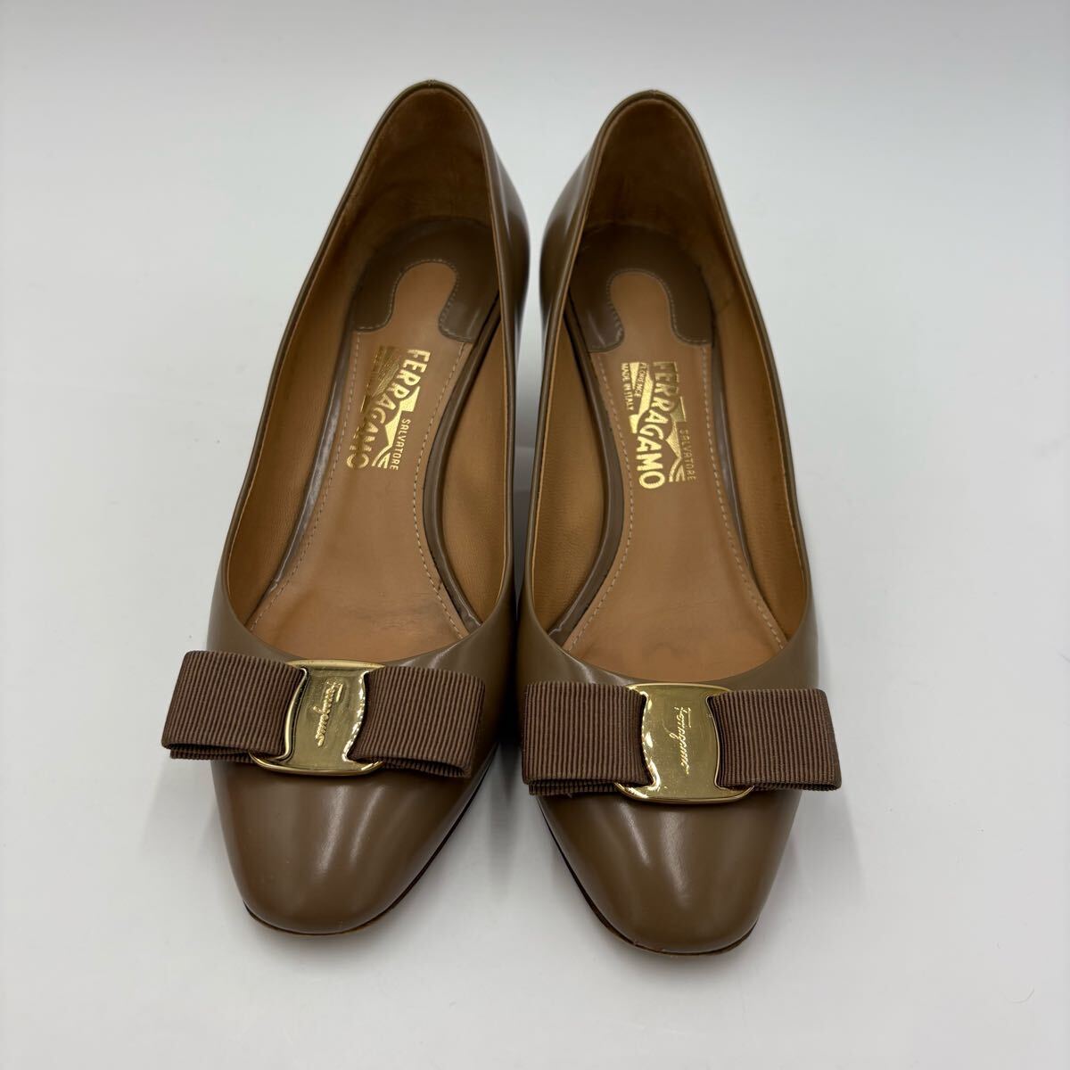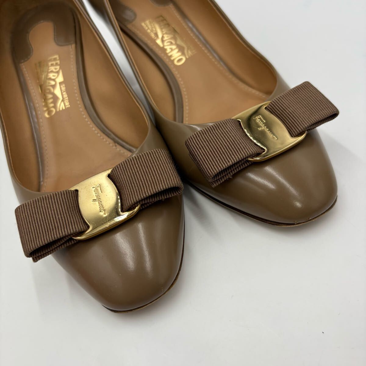 ■ 箱付き イタリア製 ラグジュアリーシューズ Salvatore Ferragamo サルヴァトーレフェラガモ 本革 ヴァラリボン ヒール パンプス 6D 23cm