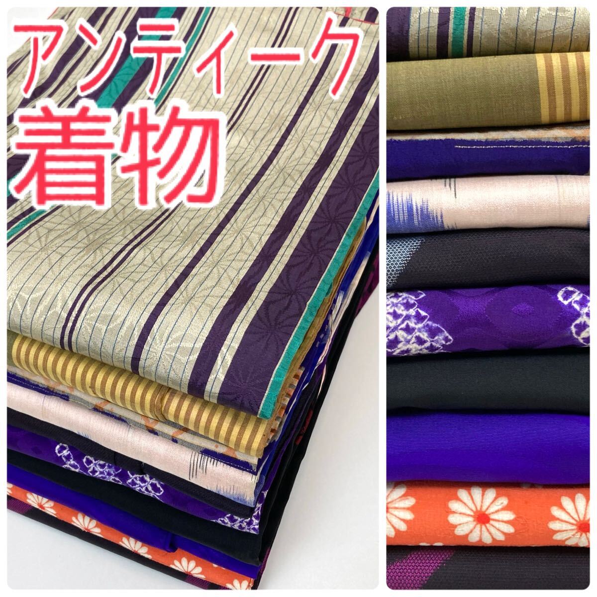 全てアンティーク着物 10点