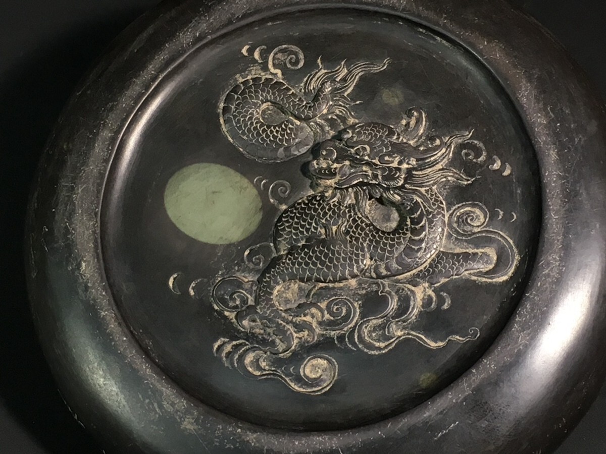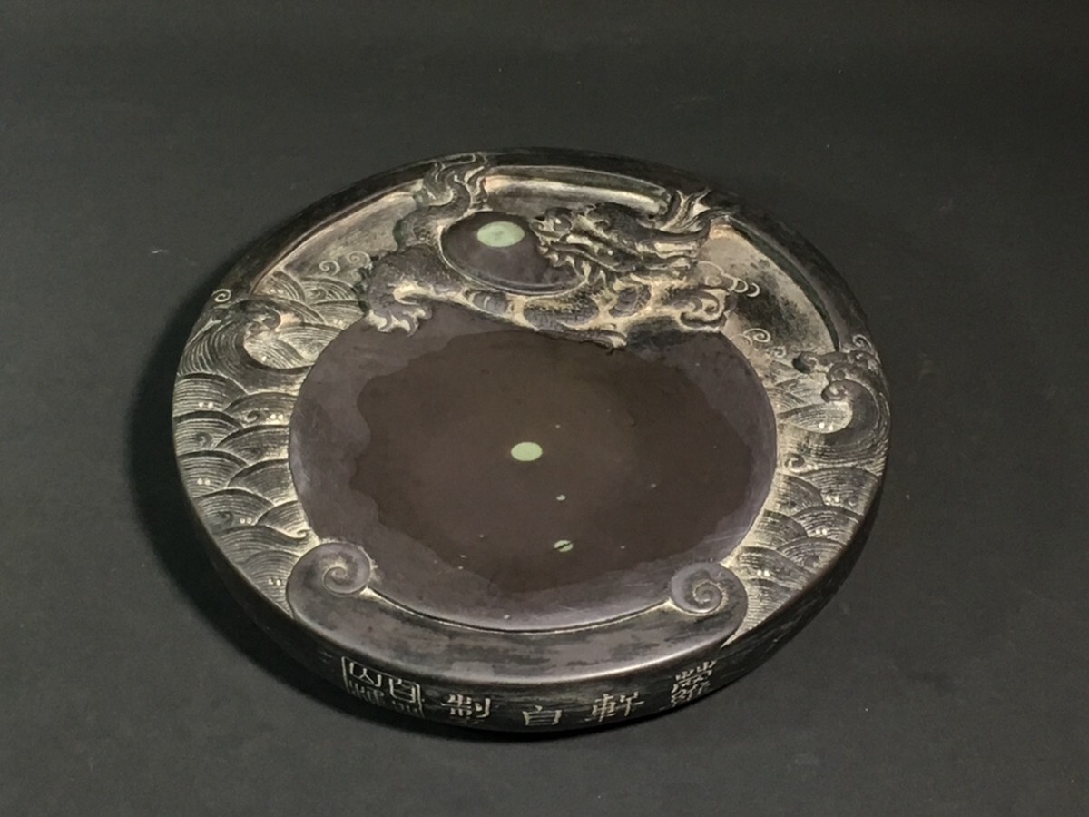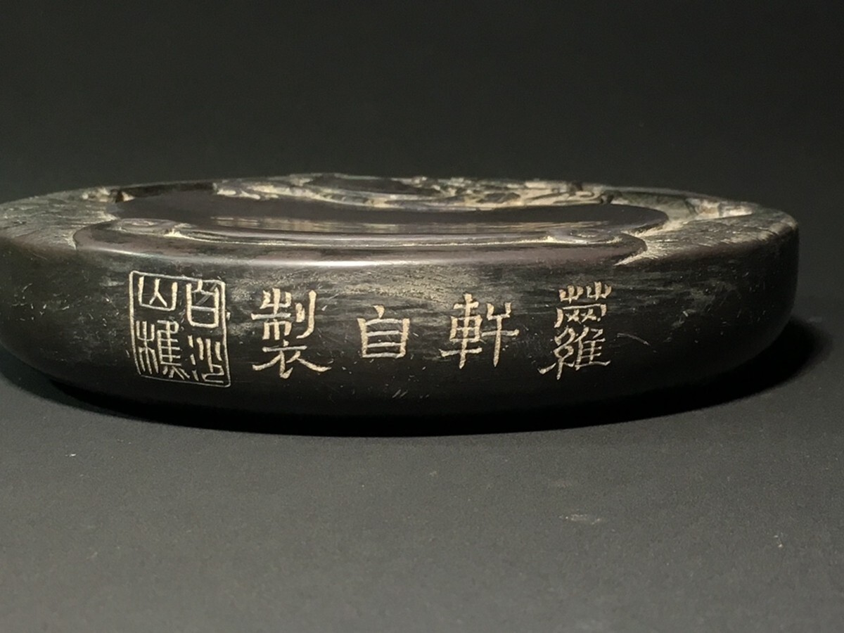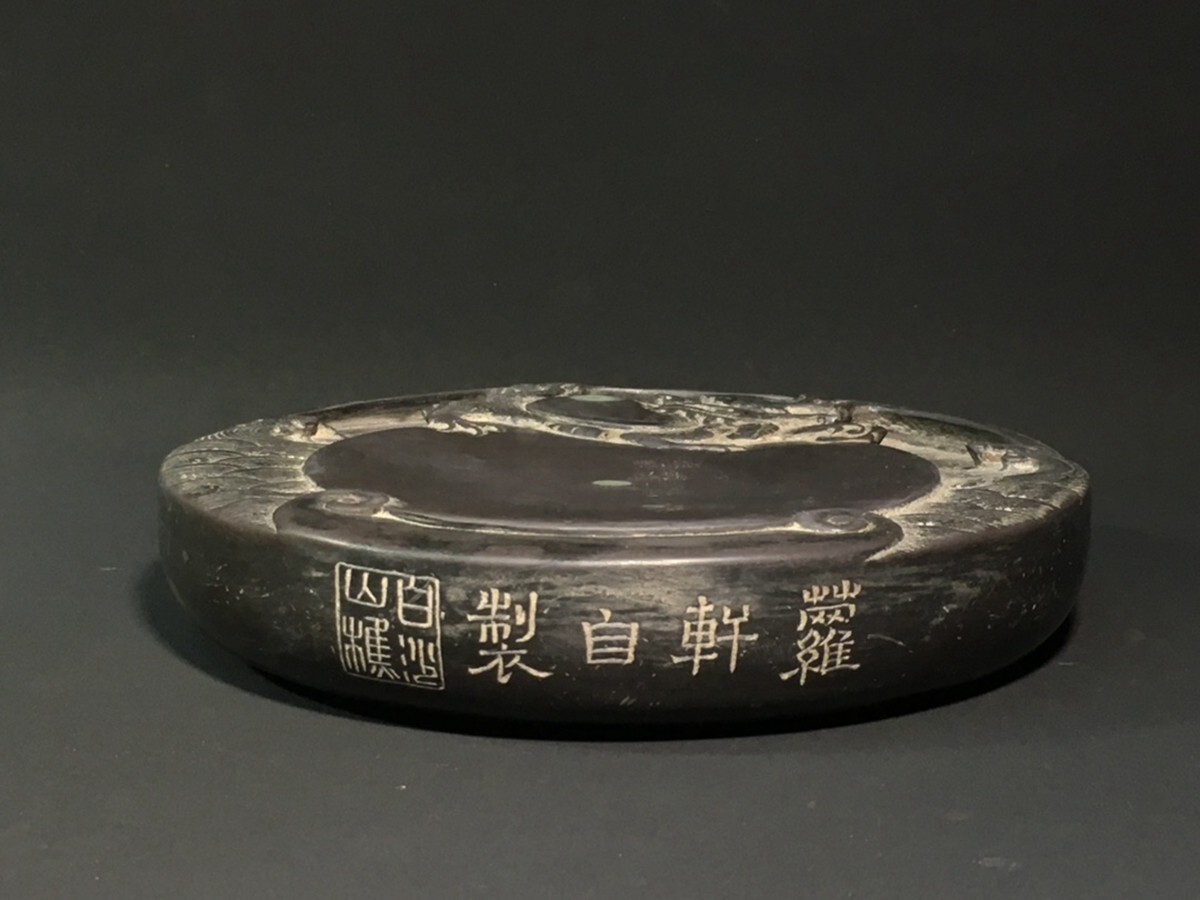 清代 端石浮彫 龍竜呈祥文房端渓硯 白沙山樵銘【仁】手彫り 文房具 書道具 中国古硯 蔵出 骨董