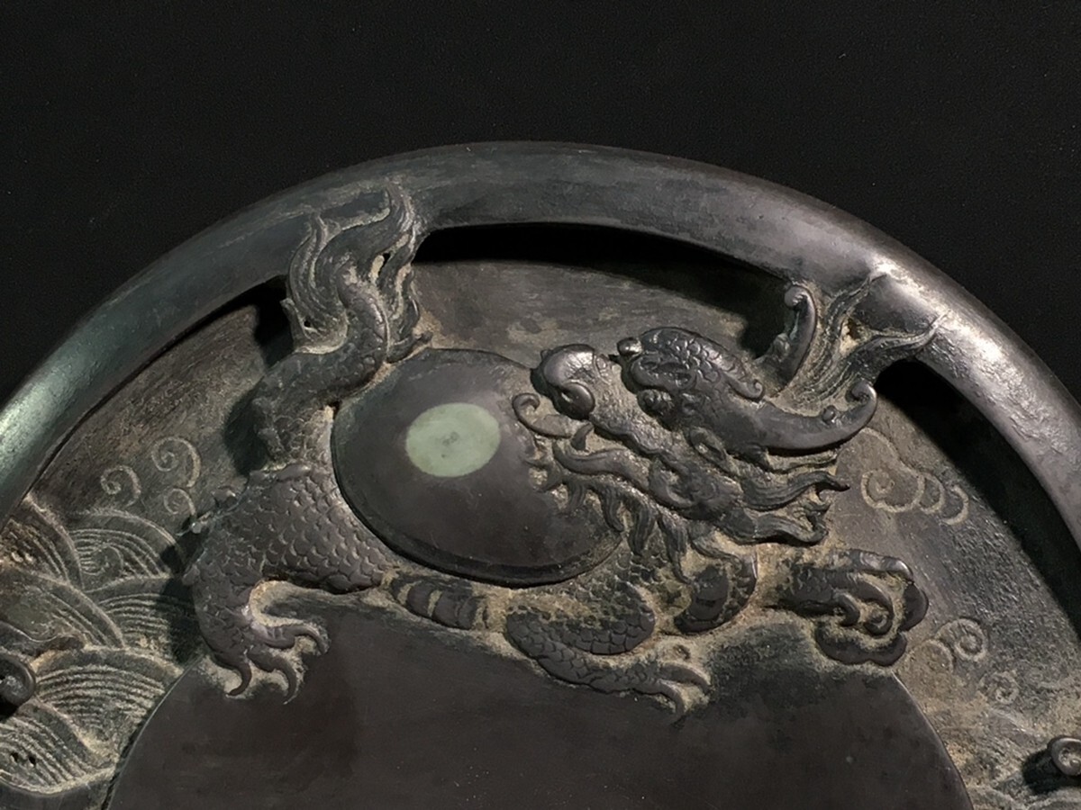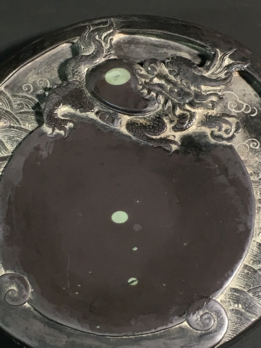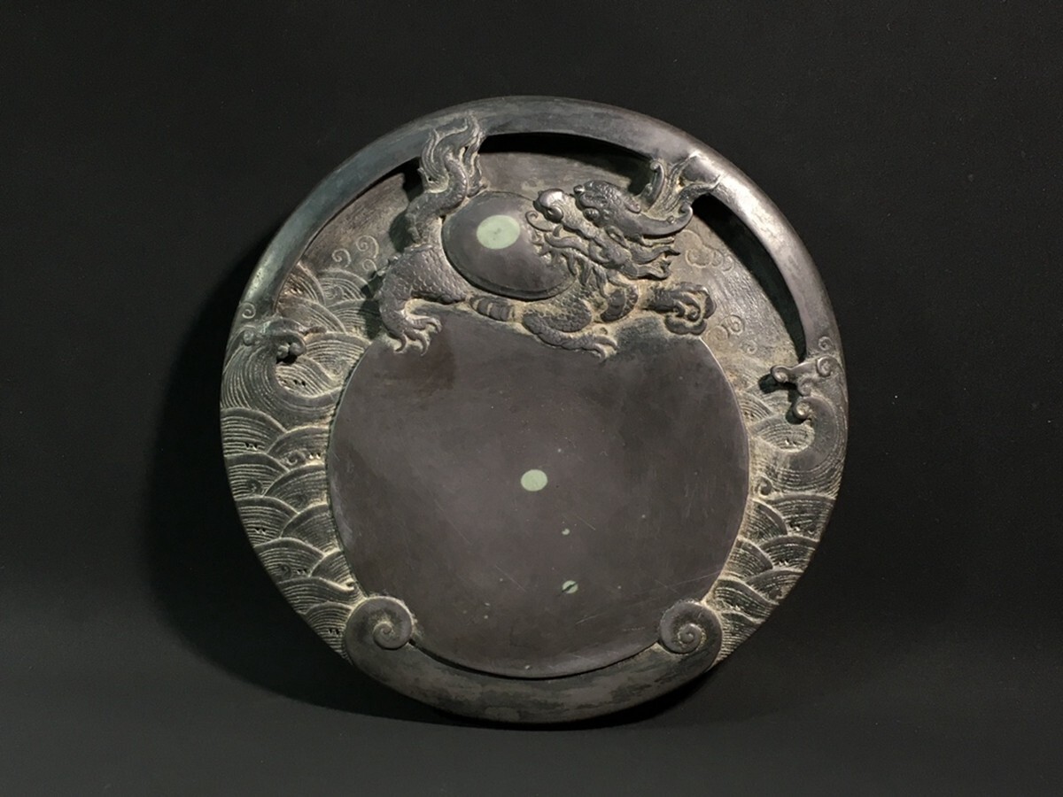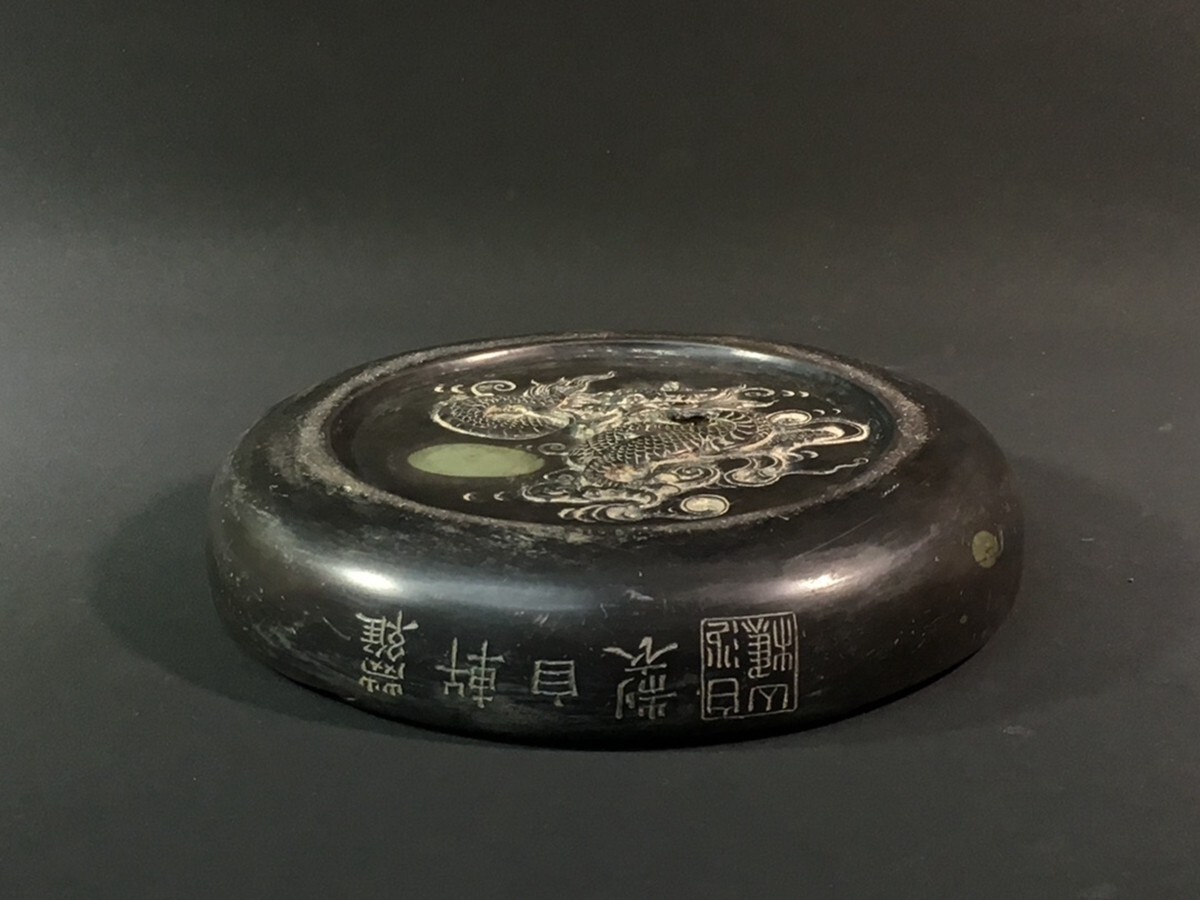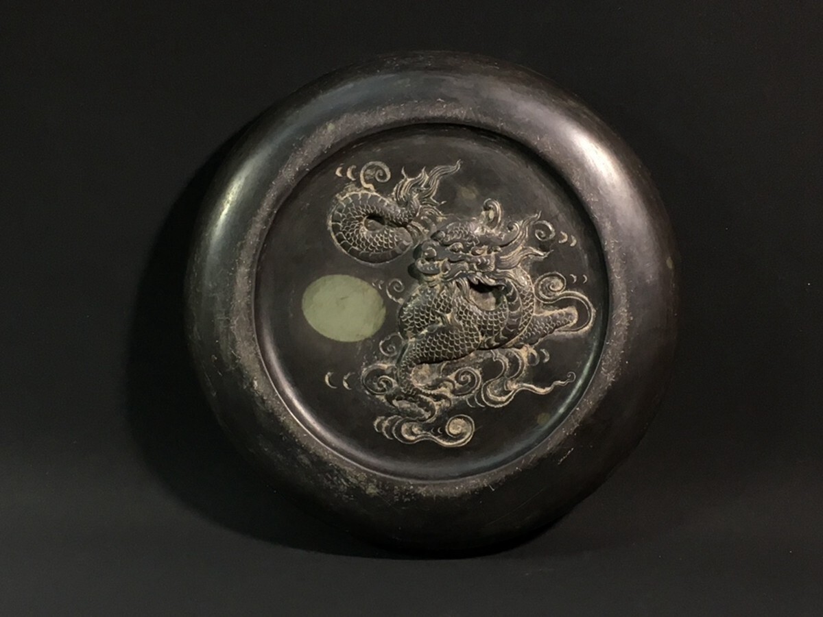 清代 端石浮彫 龍竜呈祥文房端渓硯 白沙山樵銘【仁】手彫り 文房具 書道具 中国古硯 蔵出 骨董