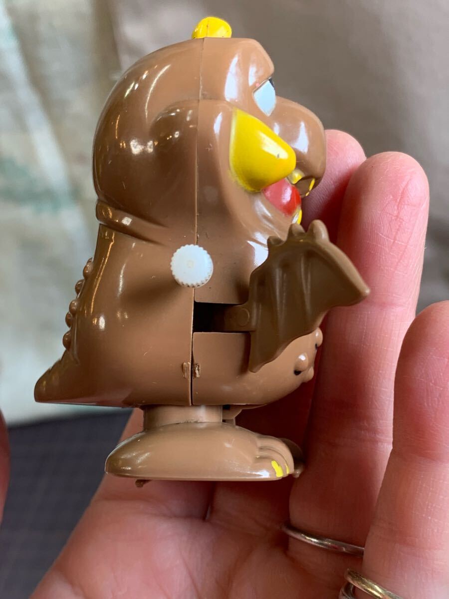 ゼンマイを回すと羽を羽ばたかせましたが、正しい動作かはわかりません。歩いてるところは確認できていません。