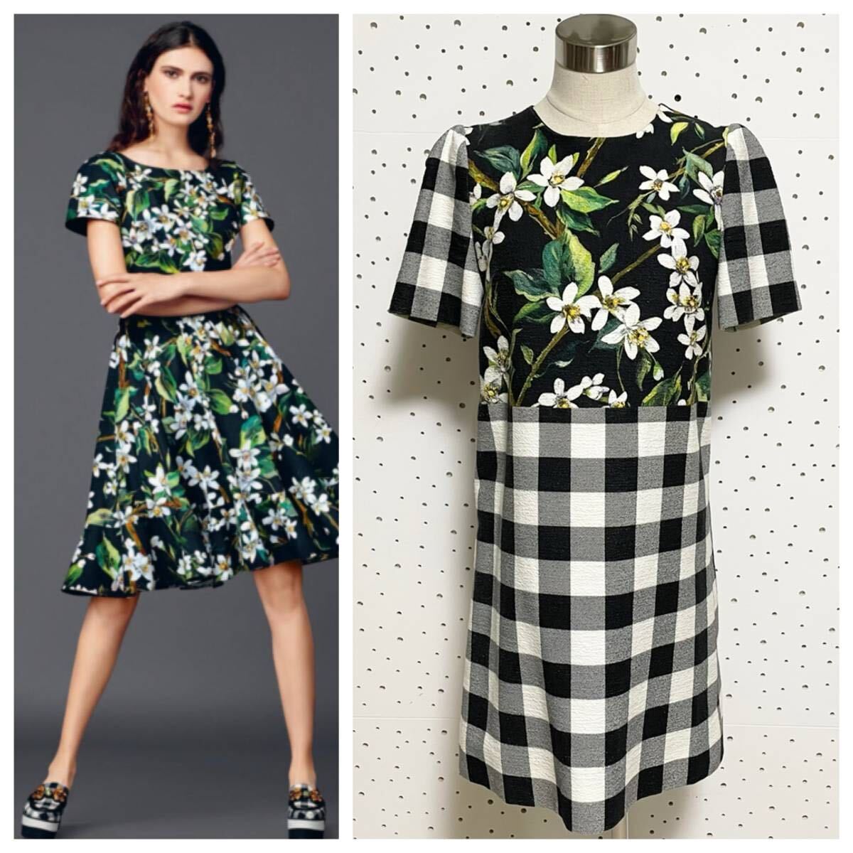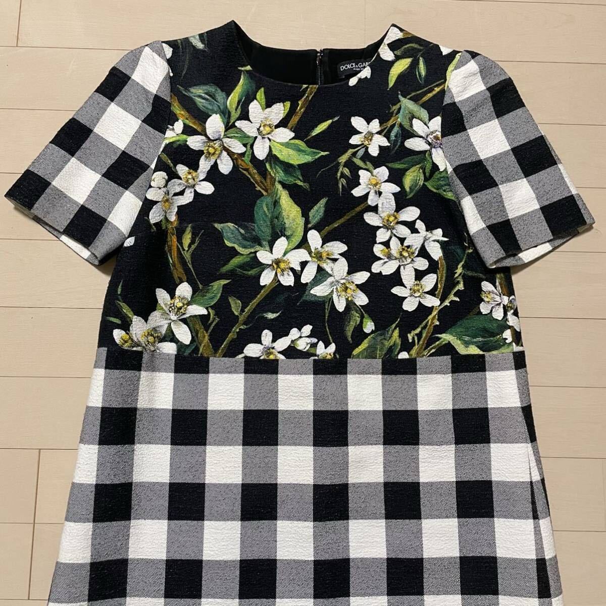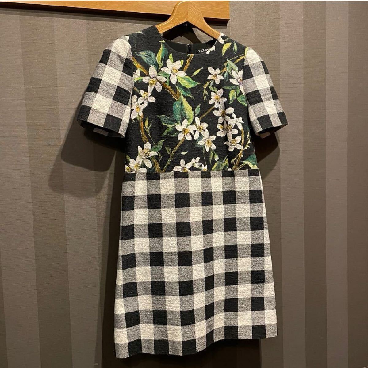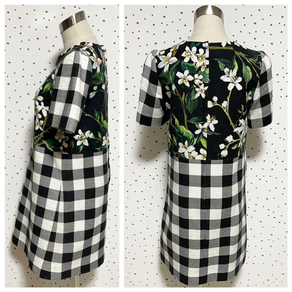 本物 ドルチェ&ガッバーナ チェック 花柄 フラワー 切替デザイン 半袖 ミニ ワンピース ドレス 40 ドルガバ DOLCE&GABBANA フローラル | |||