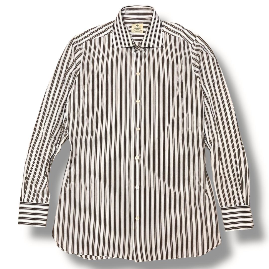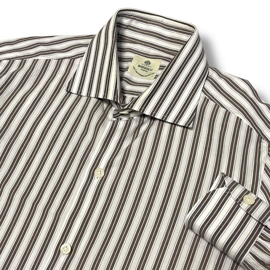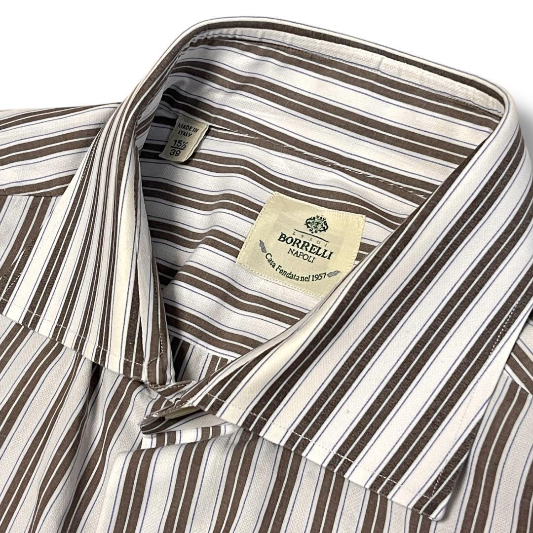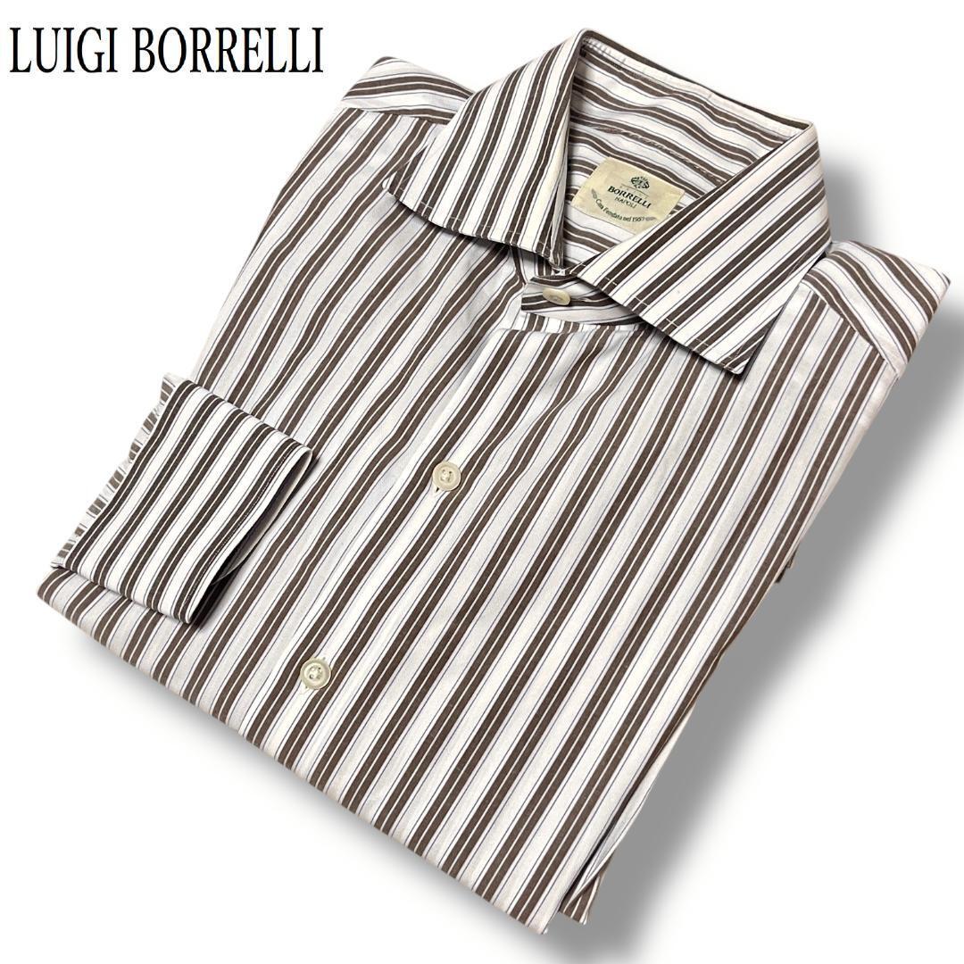 LUIGI BORRELLI ルイジボレッリ ドレスシャツ 151/2 39 ストライプ ブラウン ホワイト 茶 白