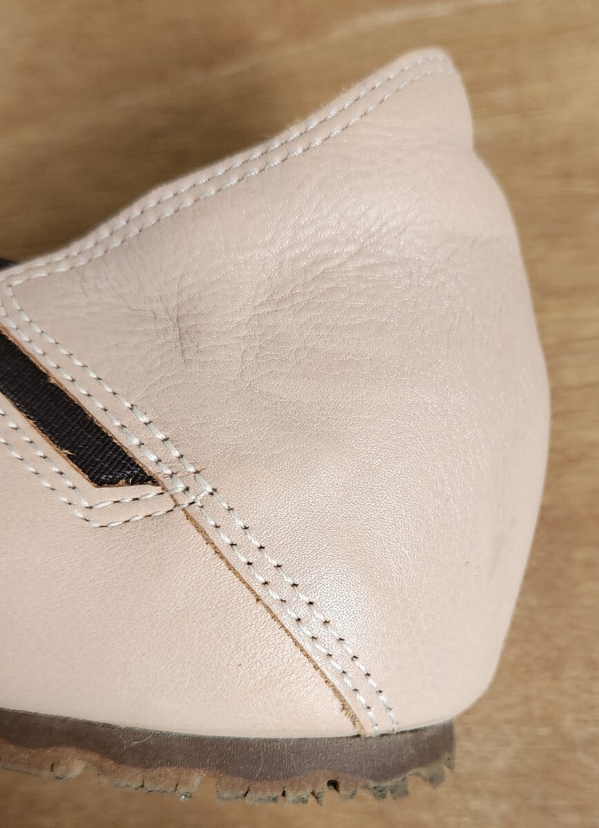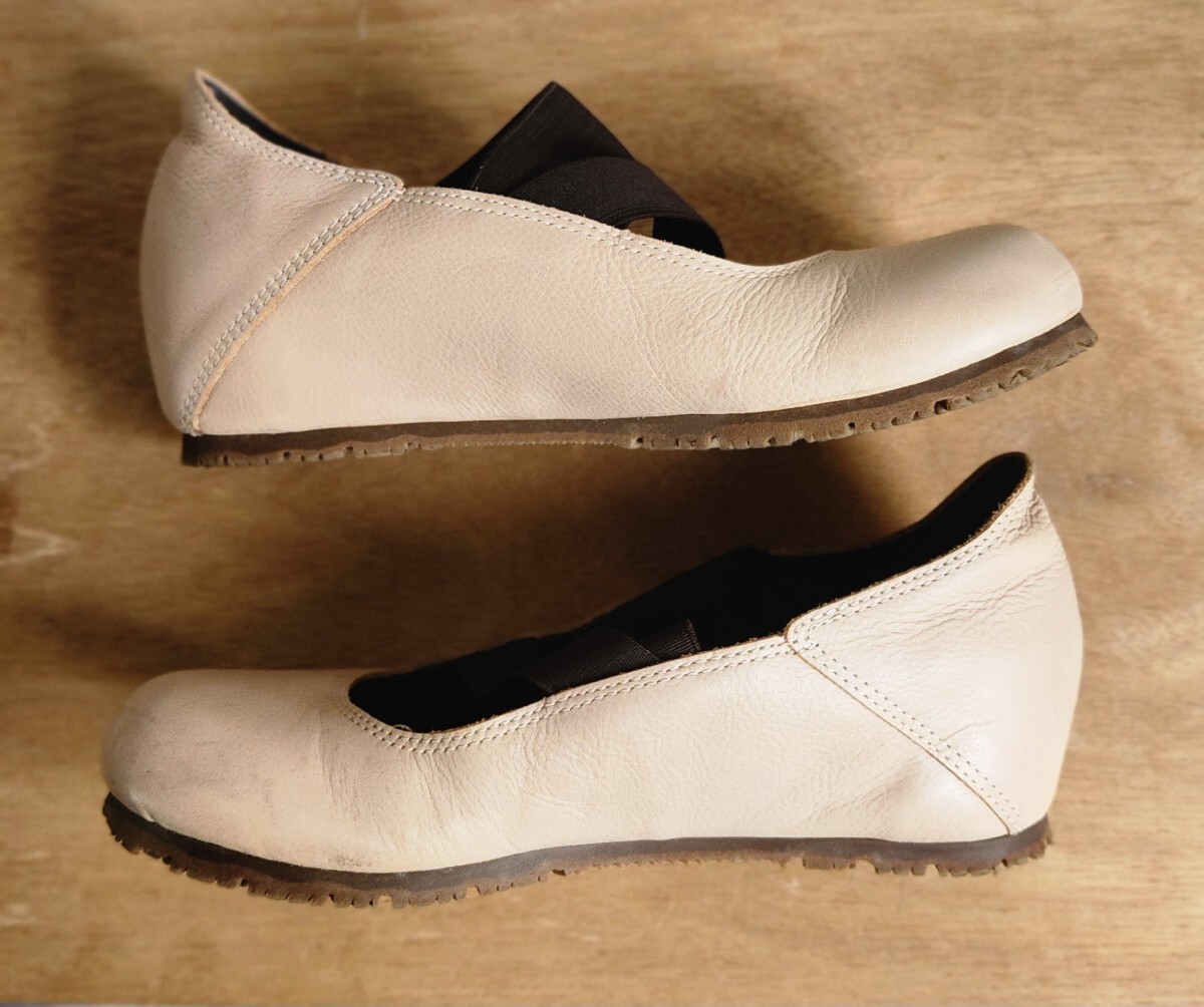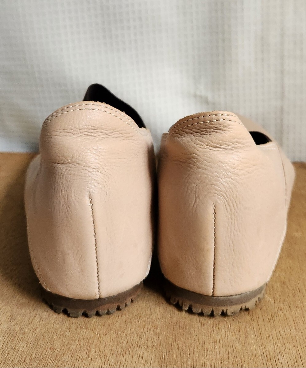 可愛い変形メリージェーン。クロスされた太ゴムに4Eと履きやすさ抜群。