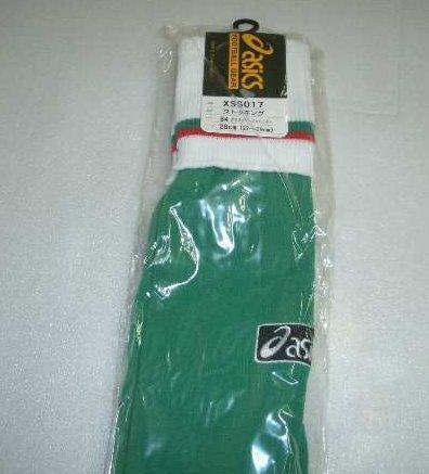27~29cm asics アシックス サッカーストッキング緑×白 新品 レトロ 即決/