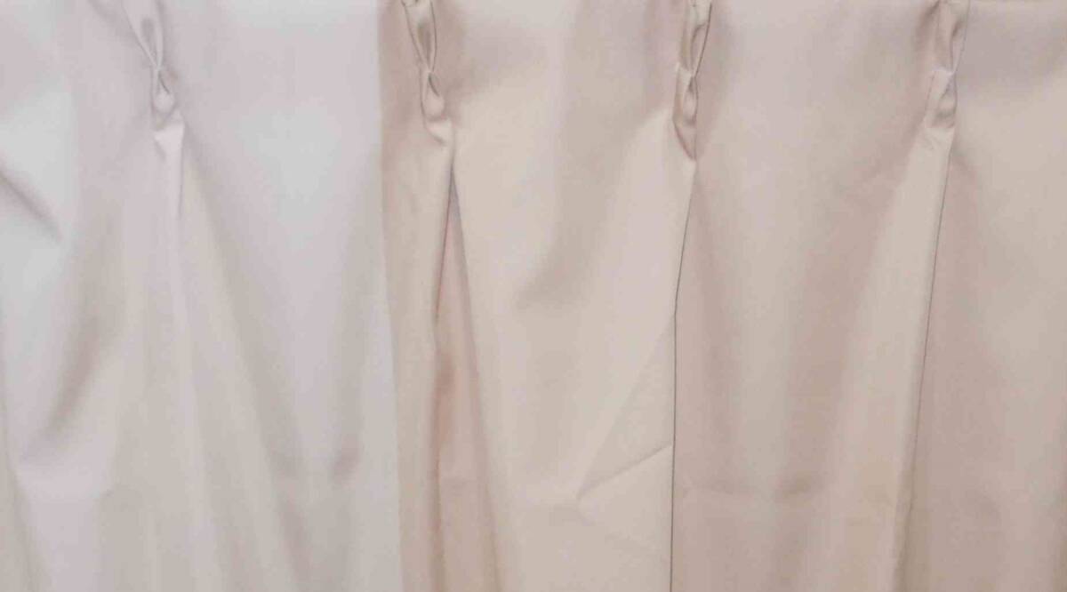 残反で製作したカーテンで、無駄なく使って縫製している為、生地にキズのある部分も使用して縫製しています。