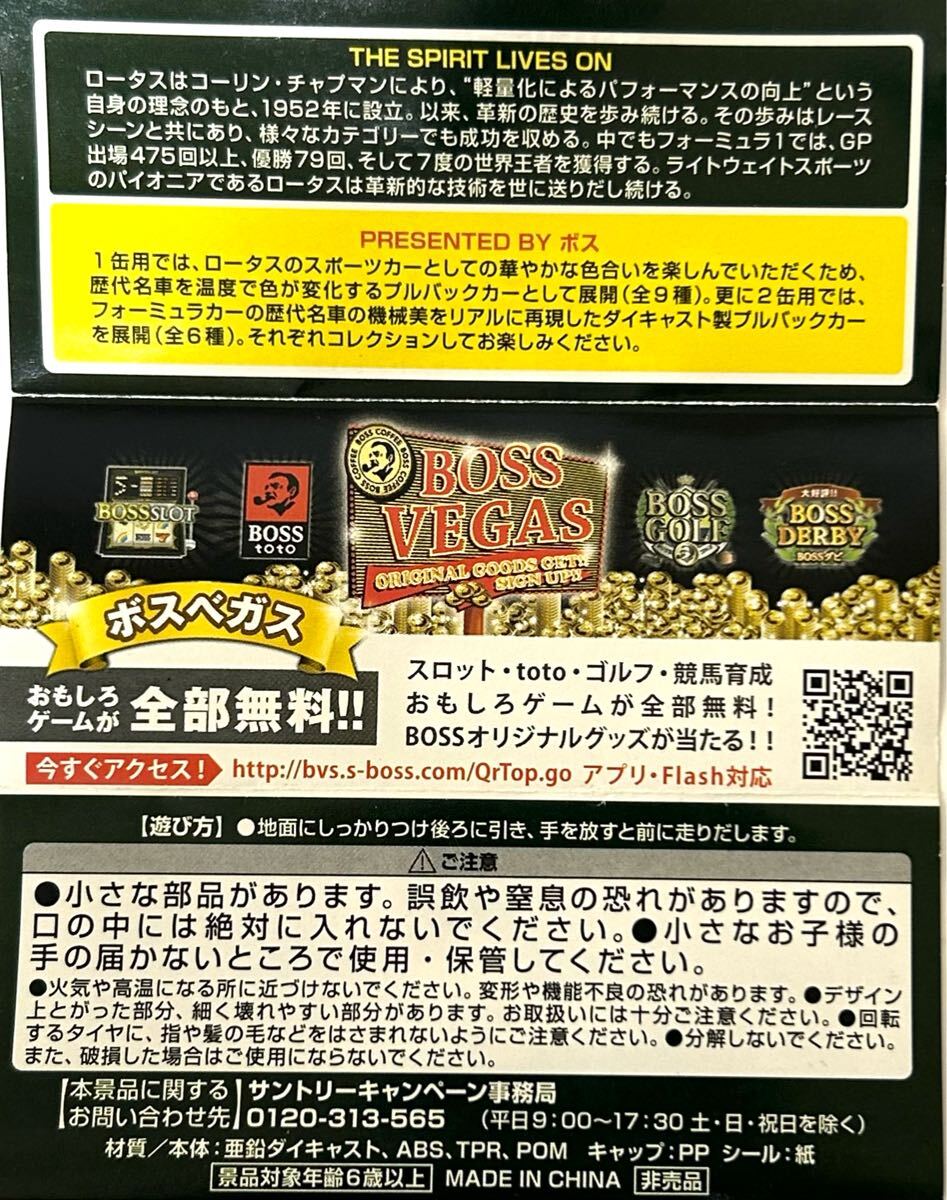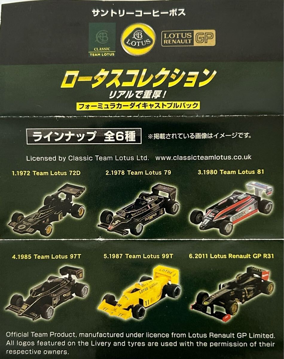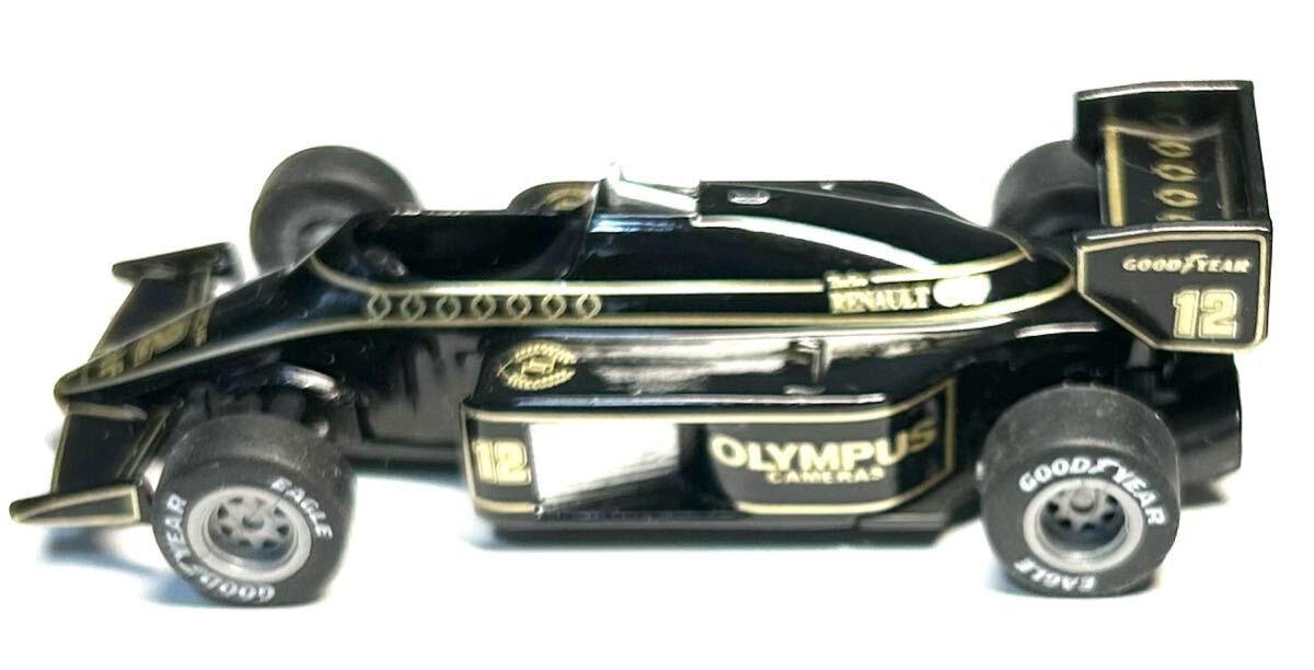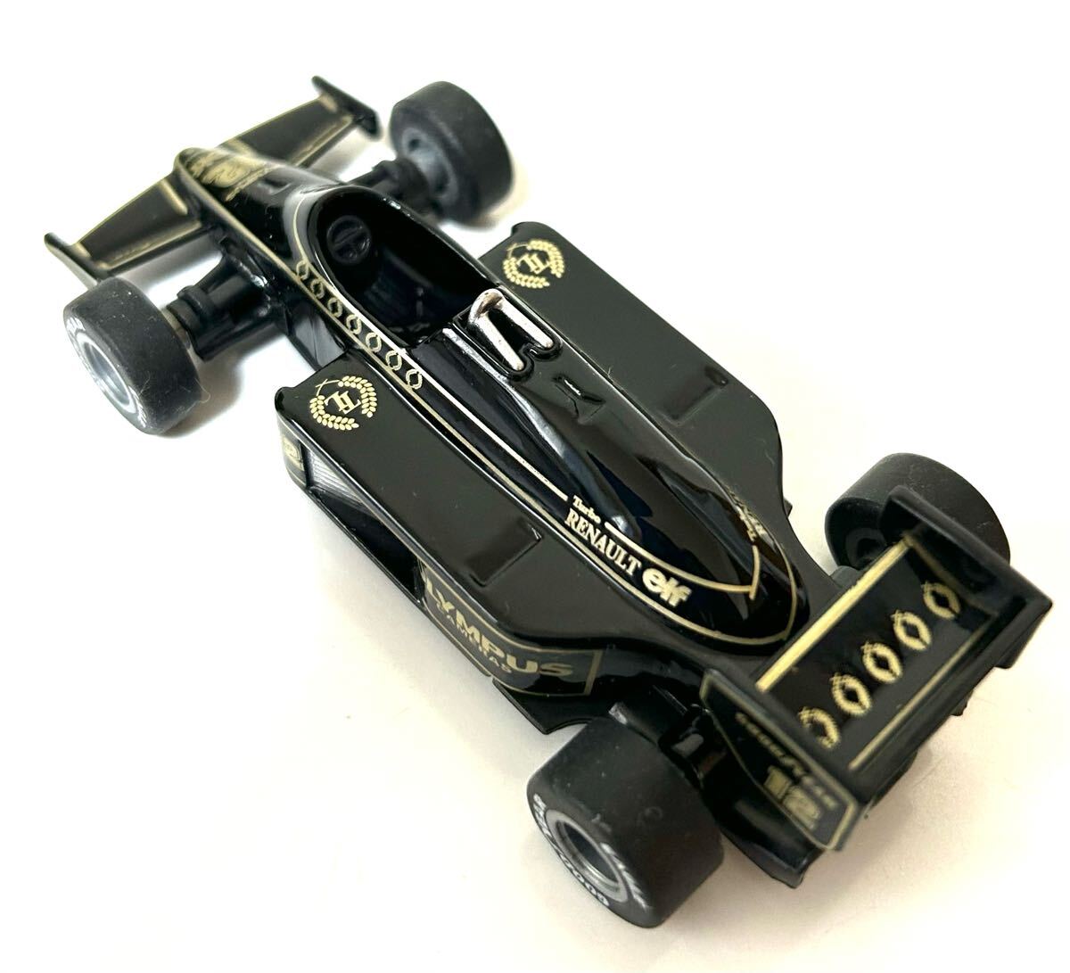 この頃からのF1ミニカーはタバコ広告の規制が強くJPSとかキャメルとかマルボロの広告が入れられなくなりました。このミニカーも入っていません。