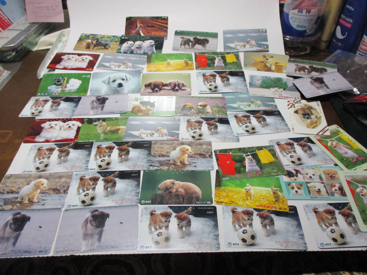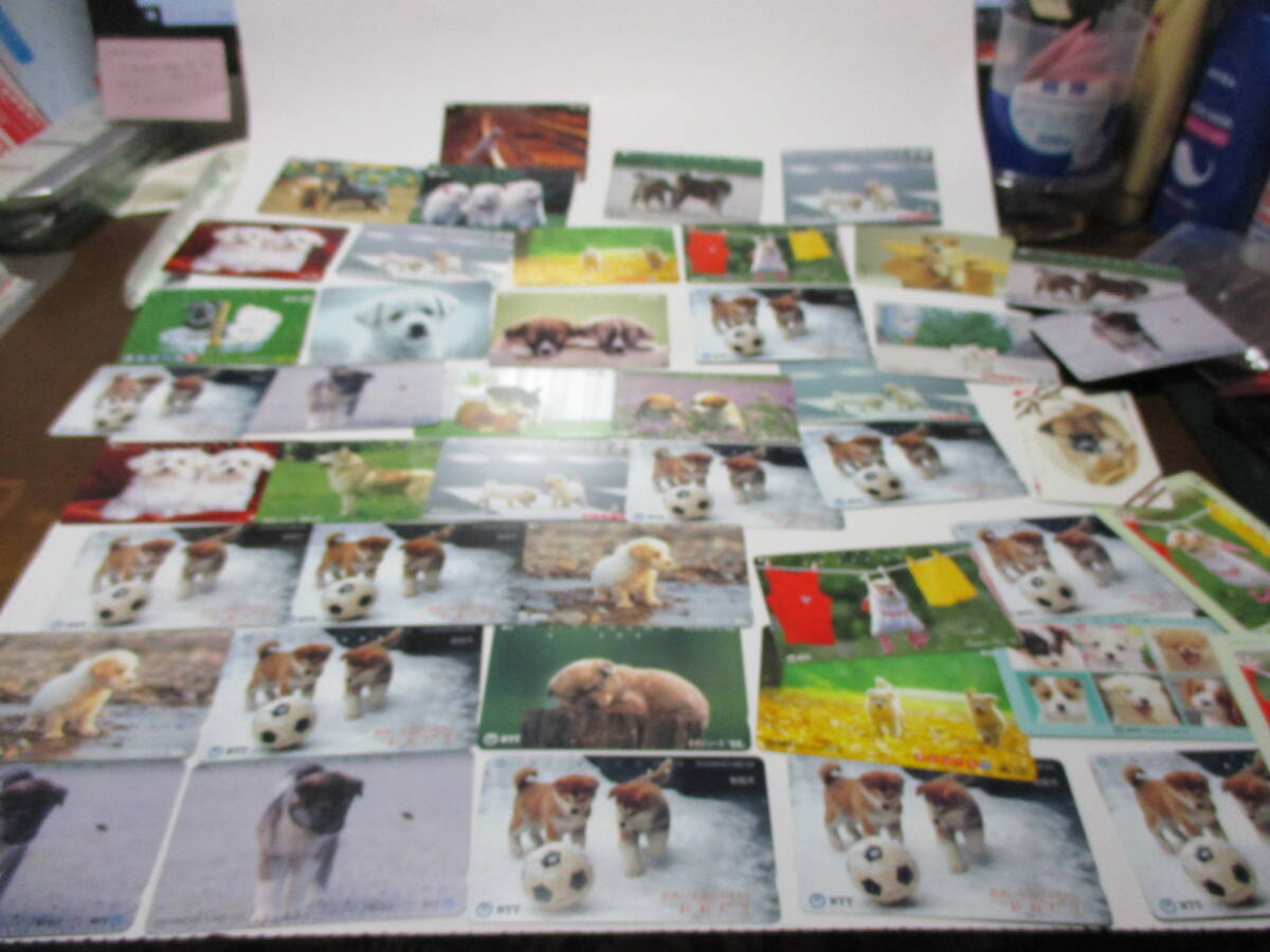 | (ス.自)~使いかけ(犬の絵柄、46枚)テレホンカード 使用途中 穴あき~使用済み | ||