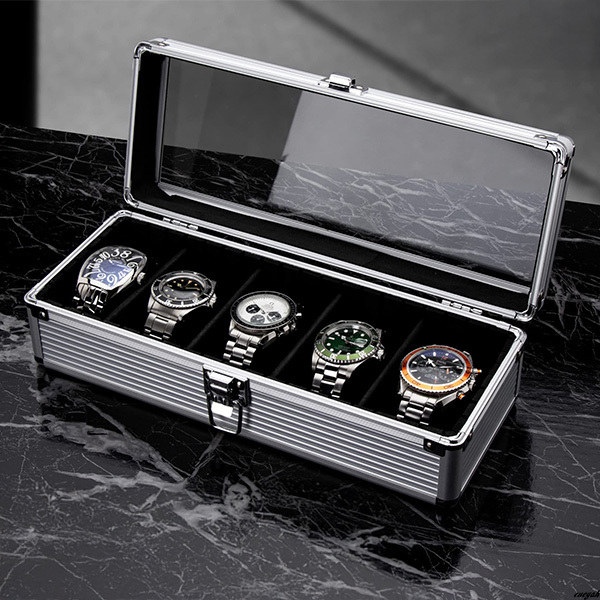 大切な腕時計を最大5本収納できる、高級感漂うアルミ製収納ケースです。