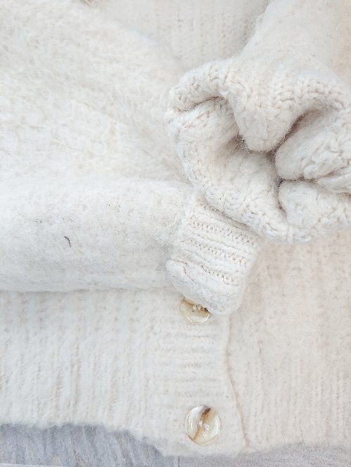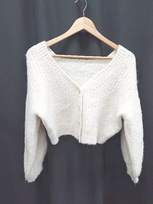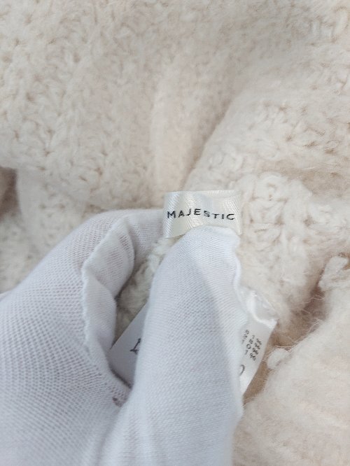 ◇ ⊇ MAJESTIC LEGON マジェスティックレゴン ショート丈 長袖 ニット カーディガン サイズM オフホワイト系 レディース E