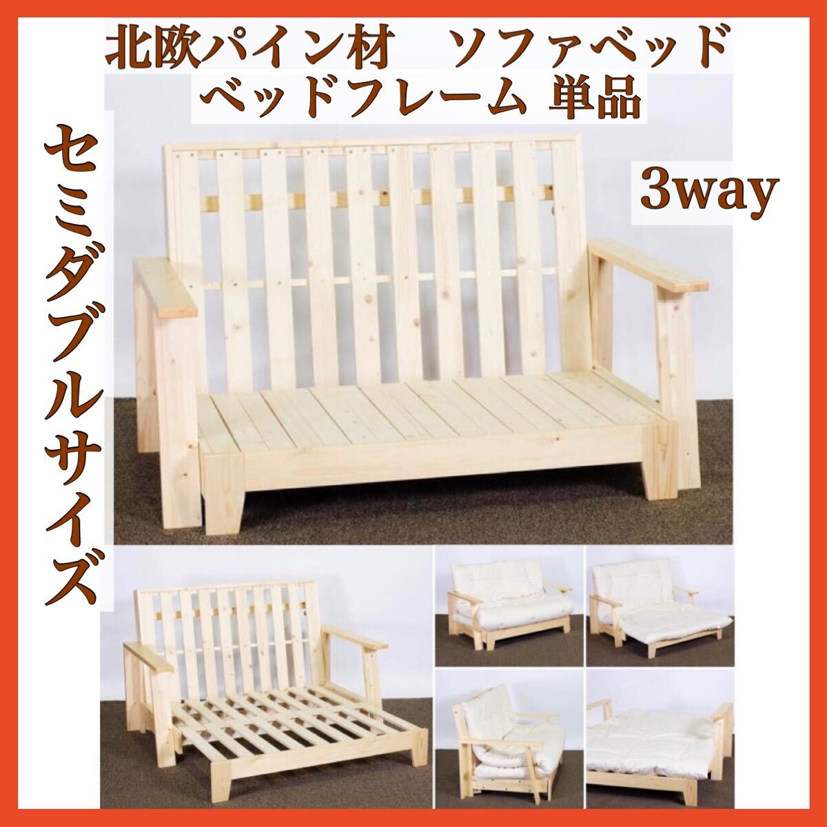 新品 北欧パイン ソファベッド フレーム 伸長 セミダブル ソファ カウチ ベッド カントリー 3WAY 伸張 木製 すのこ すのこベッド 北欧